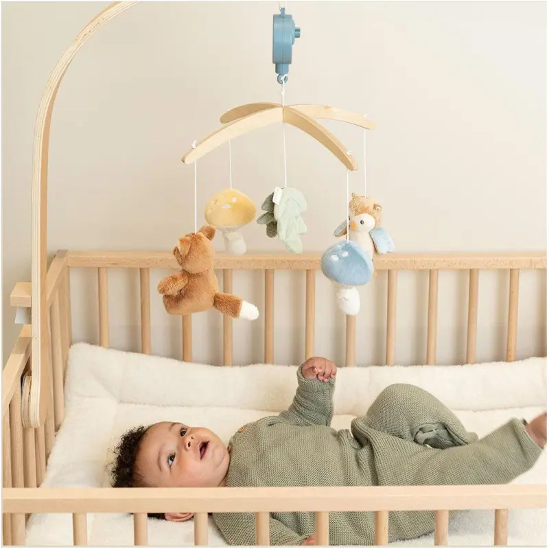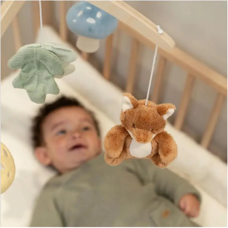 Little Dutch Drveni Vrtuljak Forest Friends dolazi uz umirujuću i slatku uspavanku koja ima čaroban učinak na vaše dijete. Nježni tonovi uspavanke pomažu opustiti vaše dijete i pripremiti ga za miran san.