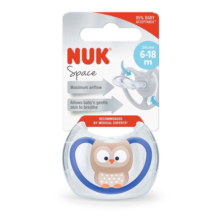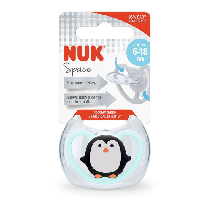 NUK silikonska duda varalica podržava pravilan razvoj zuba kod beba od 6 do 18 mjeseci. Napravljena je od mekanog, nježnog silikona. Dolazi s praktičnom plastičnom kutijom za čuvanje.