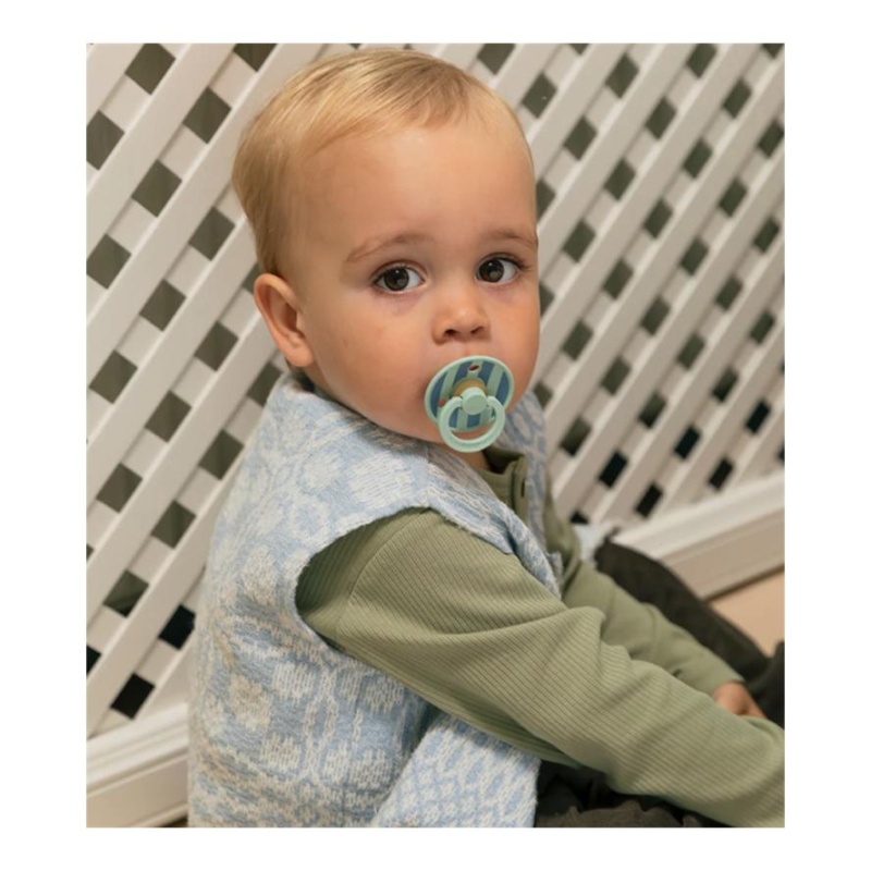 BIBS Studio Colour duda u prekrasnoj kombinaciji boja Nordic Mint i Petrol pruža savršenu ravnotežu između stila i funkcionalnosti. Dizajnirana kako bi oponašala oblik majčine bradavice, ova duda pomaže bebi da se osjeća sigurno i umireno. Izrađena od prirodne kaučuk gume, nježna je i fleksibilna, omogućujući bebi prirodan osjećaj sisanja.