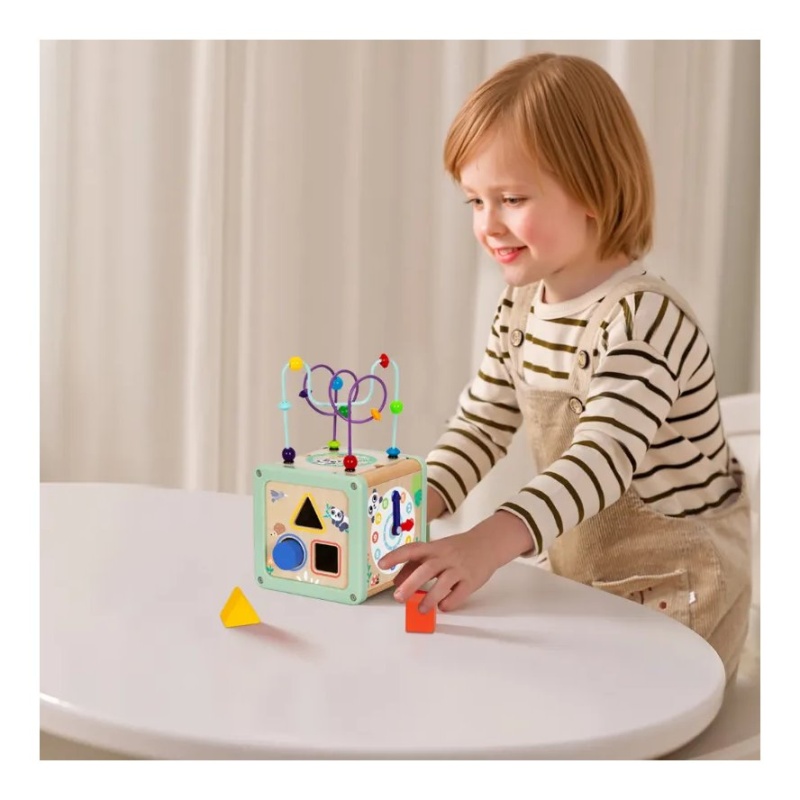 Usmjerite pažnju vašeg djeteta na igračku koja ne samo da potiče kreativnost nego i pospješuje motoričke vještine. Drvena kocka dolazi s višestranim dizajnom, uključujući aktivnosti koje potiču razvoj fine motorike, prepoznavanje oblika i boja, te logičko razmišljanje. Svaka strana kocke pruža novu avanturu, osiguravajući sate konstruktivne igre.