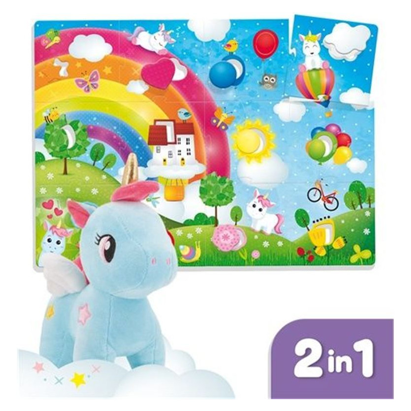 Ova prekrasna igračka donosi mališanima poseban užitak kroz kombinaciju učenja i igre. Set kombinira plišanog jednoroga i velikih slagalica, pružajući poticaj za razvoj motorike, logike i mašte u najranijoj dobi. Vesele boje i mekani materijali stvaraju sigurno i ugodno okruženje za igru, dok svaki trenutak postaje prilika za otkrivanje novih čarolija.