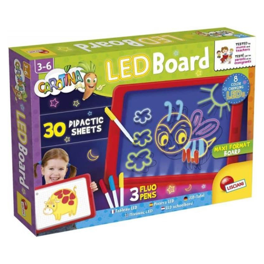 Ova edukativna i kreativna ploča piši-briši otvara vrata neograničenoj dječjoj mašti i zabavnom učenju. Prozirna površina s LED osvjetljenjem omogućuje djeci jednostavno preslikavanje oblika, slova i crteža pomoću kartica ispod ploče, čime svako crtanje postaje prava čarolija. Svjetlost koju stvaraju 8 LED dioda u okviru čini svaki crtež jasnijim i zanimljivijim, a rezultat je iskustvo koje motivira djecu na istraživanje i igru.