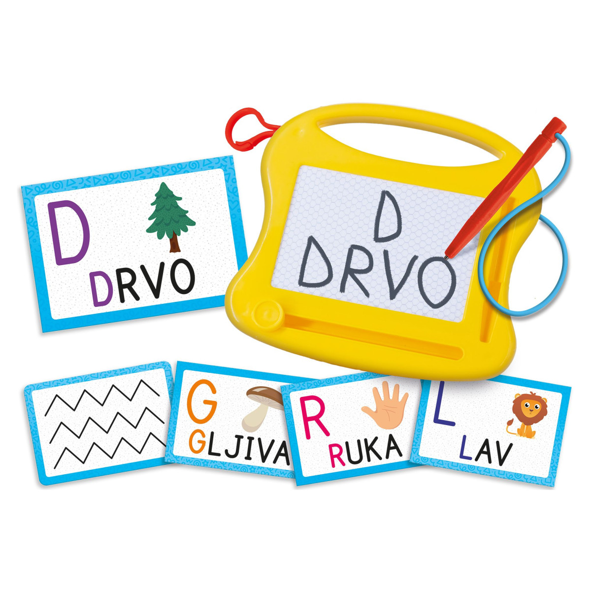Zabavite svoje dijete dok uči slova i prve riječi kroz interaktivnu igru koja potiče kreativnost i radoznalost. Ovaj edukativni set spaja učenje i igru – mališani mogu pisati i brisati na praktičnoj ploči koliko god puta žele, što im omogućuje bezbrižno vježbanje bez pritiska i bojazni od pogrešaka.