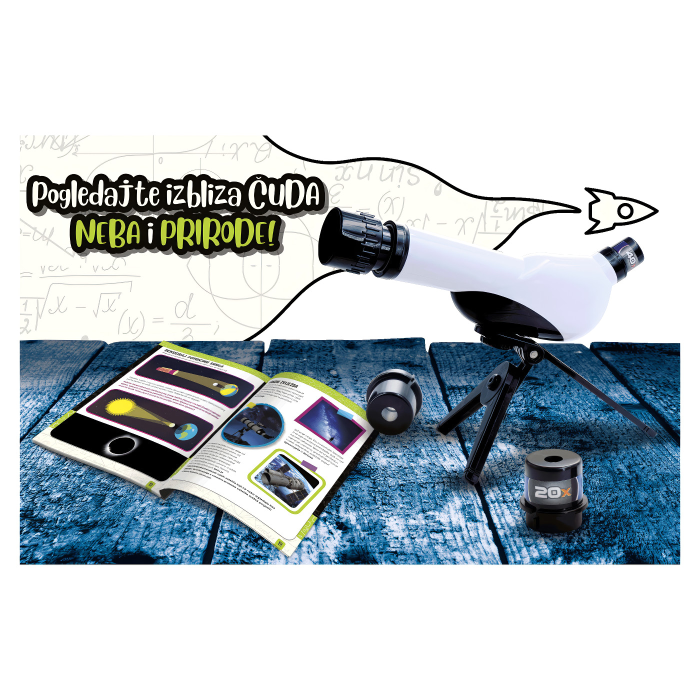 Uz visokokvalitetni teleskop s čak tri mogućnosti uvećanja, promatranje Mjeseca, planeta i dalekih krajolika postaje prava znanstvena pustolovina. S ilustriranim priručnikom lako ćete naučiti kako koristiti teleskop te saznati više o Sunčevom sustavu i fazama Mjeseca. Sve je prilagođeno početnicima, tako da prve korake u astronomiji možete napraviti s pouzdanjem i veseljem.
