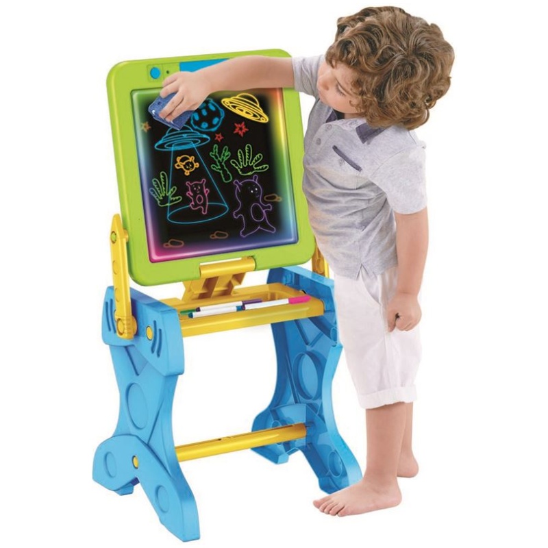 Ali to nije sve! Dobivaš i komplet s 4 fluorescentna markera za pisanje, koji će omogućiti tvojem djetetu da svoje crteže dodatno osvijetli i učini ih još posebnijima. Tvoje dijete će biti ponosno na svoje umjetničko djelo i uživat će u svakom trenutku provedenom za ovim stolom.