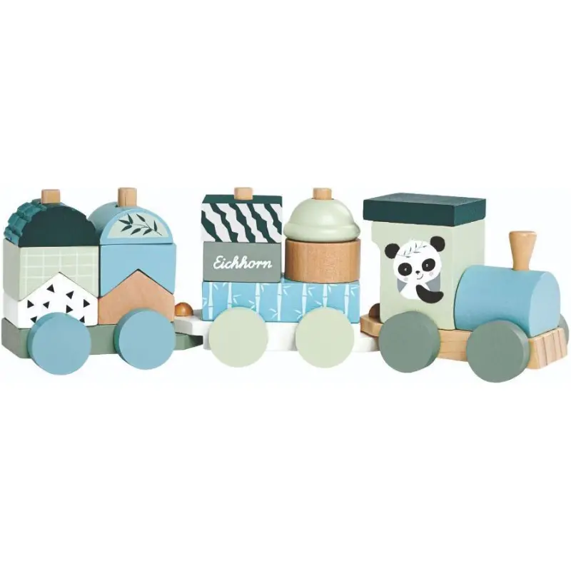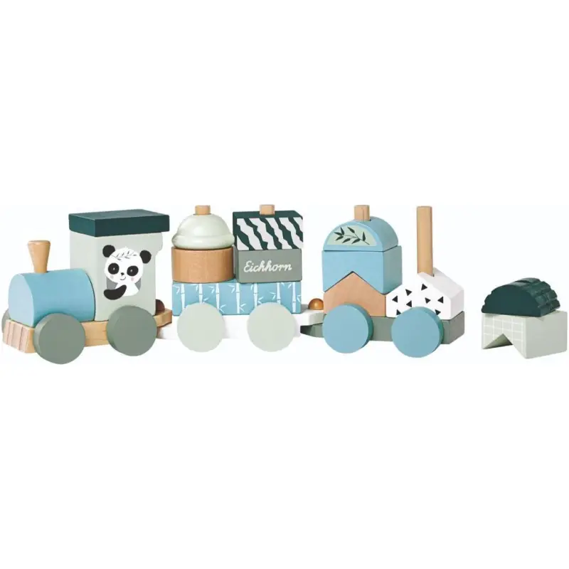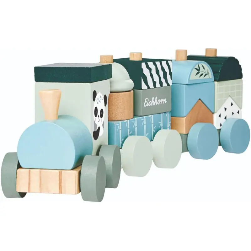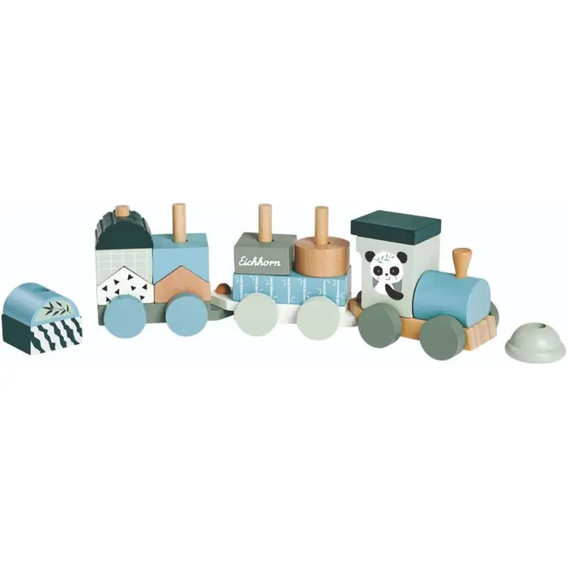 - Drveni vlak s oblikovanim dijelovima za kreativnu igru.