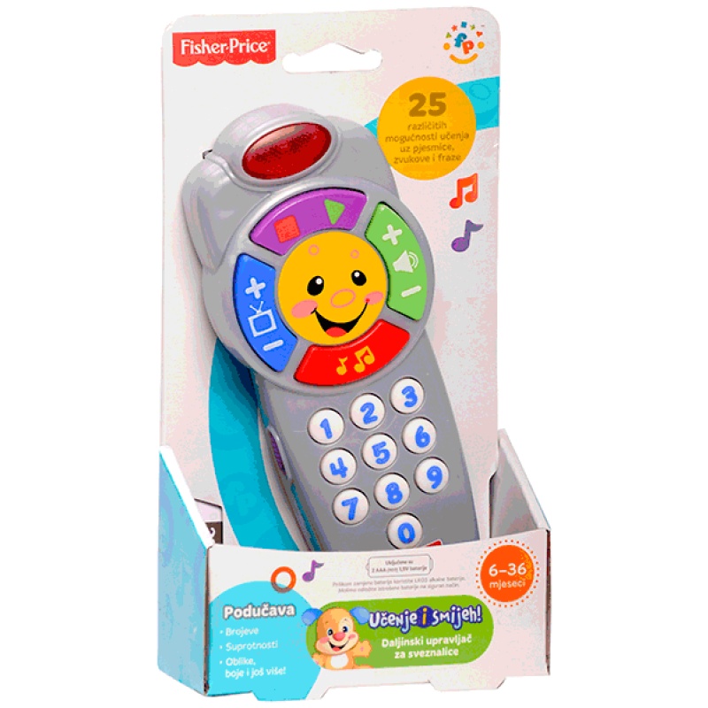 Vaše dijete sada može kontrolirati zabavu – sa daljinskim upravljačem koji je prilagođen baš njemu! Realističan izgled potiče maštovitu igru, dok brojalice, zvukovi i fraze pomažu djetetu učiti bojeve, boje,oblike i još puno stvari. Za rad su potrebne 2 AAA baterije.