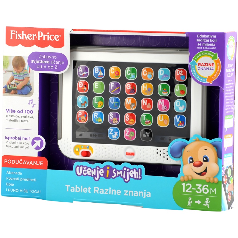 Ovaj tablet uključuje tehnologiju Smart Stages™, nov i uzbudljiv način za promjenu edukativnog sadržaja kako dijete raste! Svako se dijete razvija svojim vlastitim ritmom, a Smart Stages™ tehnologija omogućuje odabir aktivnosti koje najbolje odgovaraju razvojnoj fazi vašeg djeteta! Tu je cijeli niz razvojno prilagođenih pjesmica, fraza i zvukova unutar tri razine igre. Dijete može pritisnuti jednu od 31 aplikacijskih tipki kako bi uključila zvukove i glazbu i uključila učenje o slovima, prvim riječima, životinjama i puno više toga. Kako bi bio još zabavniji, zaslon tableta svijetli i treperi uz pjesmice i fraze.