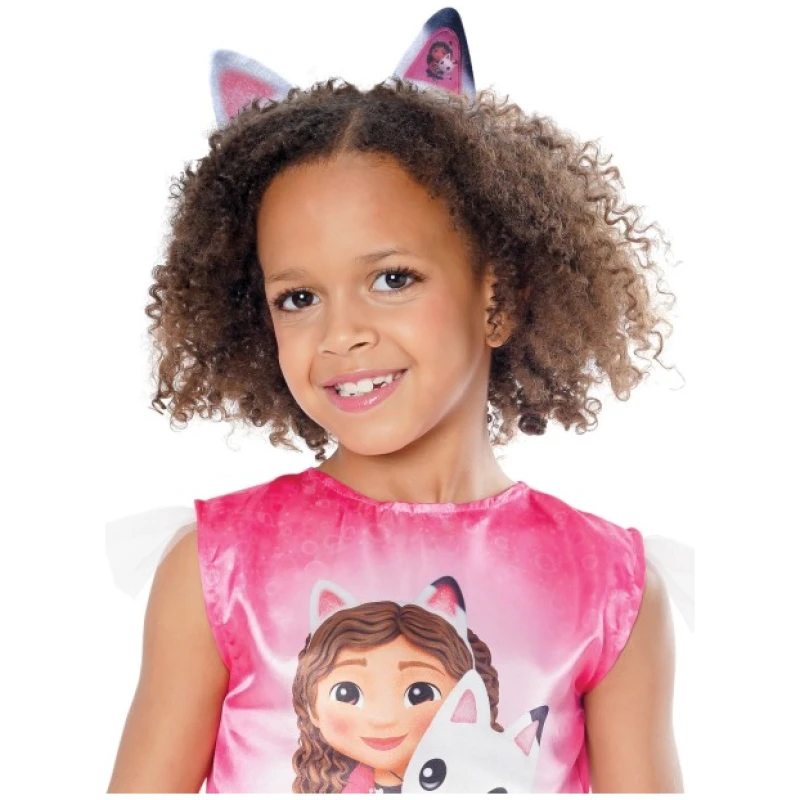 Dizajnirana s ljubavlju i pažnjom, ova haljina bez rukava ima bijelo-rozu gornju polovicu s mačkom otisnutom na prsima. Donji dio haljine je u ružičastoj boji s bijelim prugama i otiscima mačaka. A da bi Gabby stvarno zaživjela, uključena je i prekrasna kruna sa mačjim ušima.