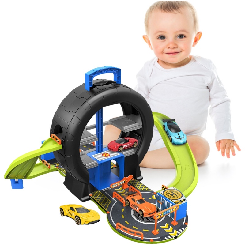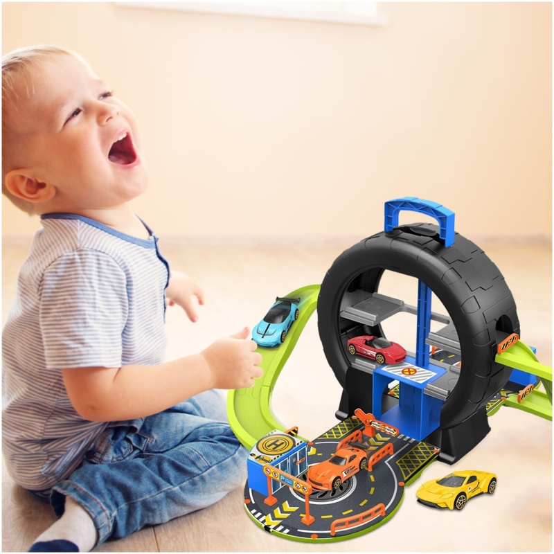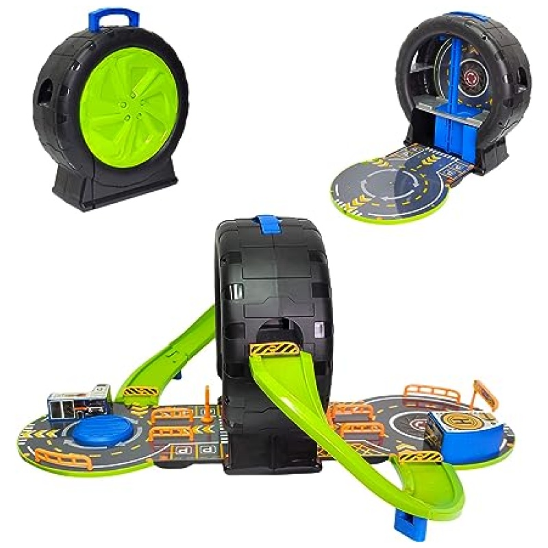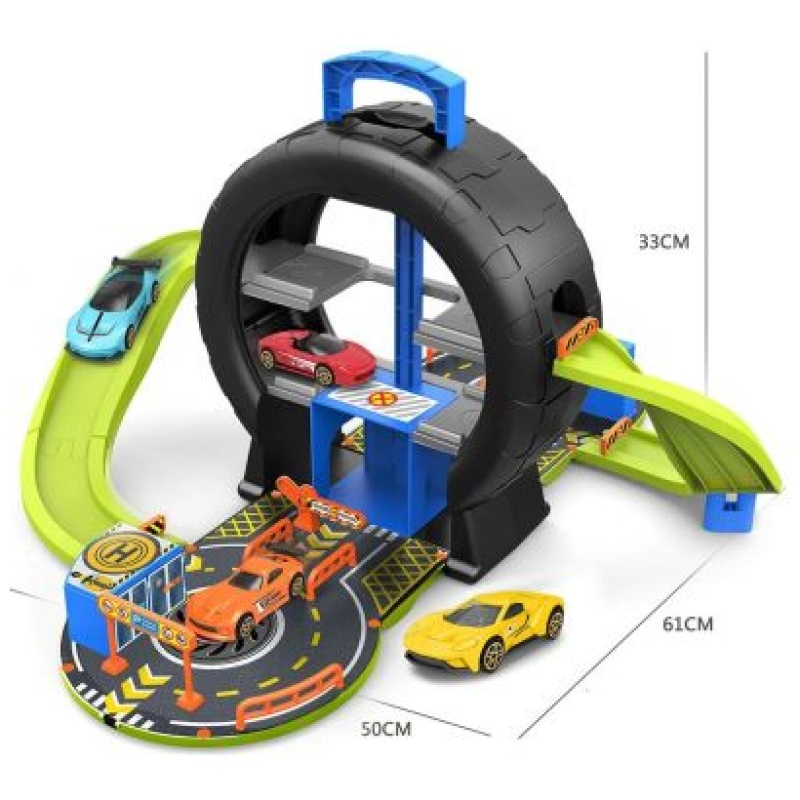 Ova garaža dolazi upakirana u prekrasnu kutiju u obliku gume koja će dodatno oduševiti vaše dijete prilikom otvaranja. Također, prikladno se pohranjuje u tu kutiju kako bi se olakšalo čuvanje i organizacija igre.