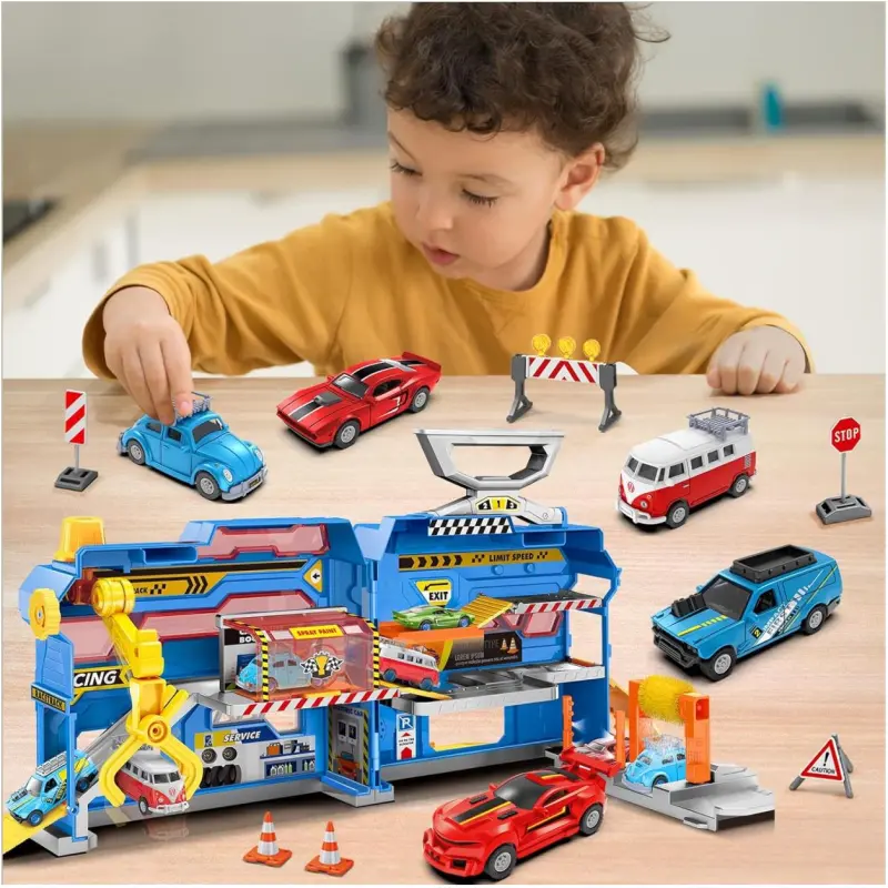 Sami sastavite svoju garažu: Ovaj set zahtijeva sastavljanje od strane djece, što će im pomoći u razvijanju vještina ruku i mozga. Ove zabavne i edukativne igračke će djecu udaljiti od video igrica, telefona i televizora. Sklopivi i prijenosni dizajn omogućuje praktično spremanje.