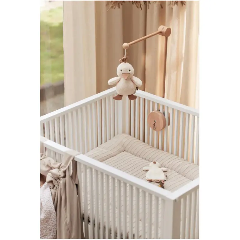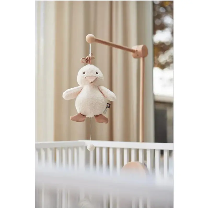 Ova preslatka mala patka će pjevati za tvoje malene! Glazbena vješalica svira melodiju “Uspavanka” kad povučeš konac. To može imati umirujući učinak na tvoju bebu. Savjet: Često pusti melodiju blizu svoga trbuha dok si trudna i vidjet ćeš kako će tvojoj novorođenčadi biti poznata i umirujuća. Zato je ova glazbena vješalica super poklon za baby shower. Također je savršeni poklon za trudnice. Također dostupna s preslatkim malim cvijetom.