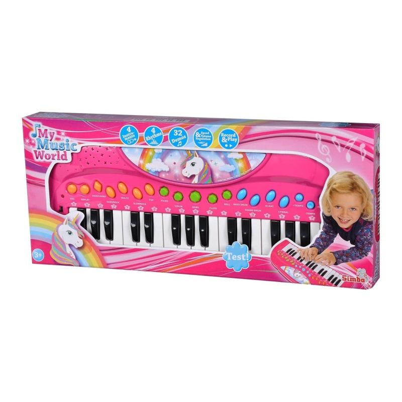 Klavijatura ima 32 tipke te omogućuje različite načine igre i stvaranja glazbe. Djeca mogu birati između 4 ritma i melodije kako bi isprobala razne zvukove i skladala vlastite pjesme. Posebni gumbi omogućuju promjenu instrumenata, što pruža dodatnu dozu kreativnosti i zabave.