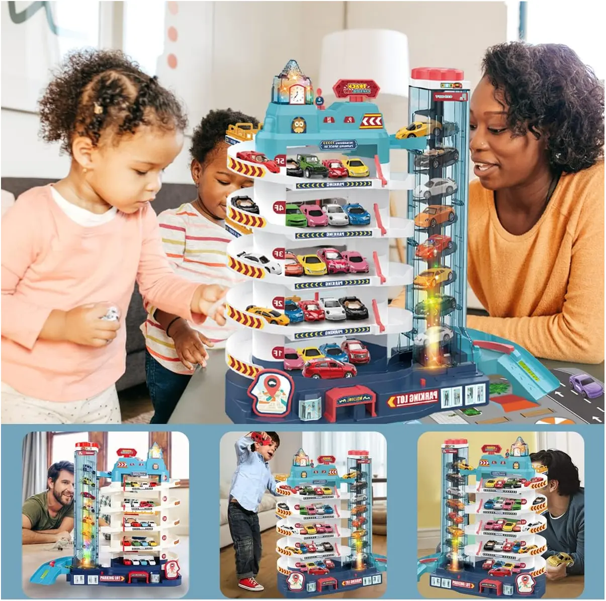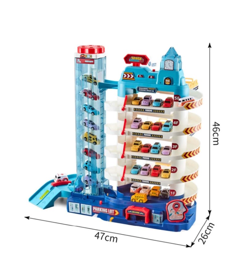 Sa dimenzijama 42*15,5*35,5 cm, ova petospratna garaža za automobile je idealna za male avanture pune akcije. Uključuje 8 minijaturnih automobila koji mogu brzo kliziti niz staze, stvarati uzbudljive utrke i istraživati različite nivoe parkiranja. Također, garaža ima svjetlosne efekte i pozadinsku muziku, što će privući pažnju djece i dodatno zabaviti njihovu igru.