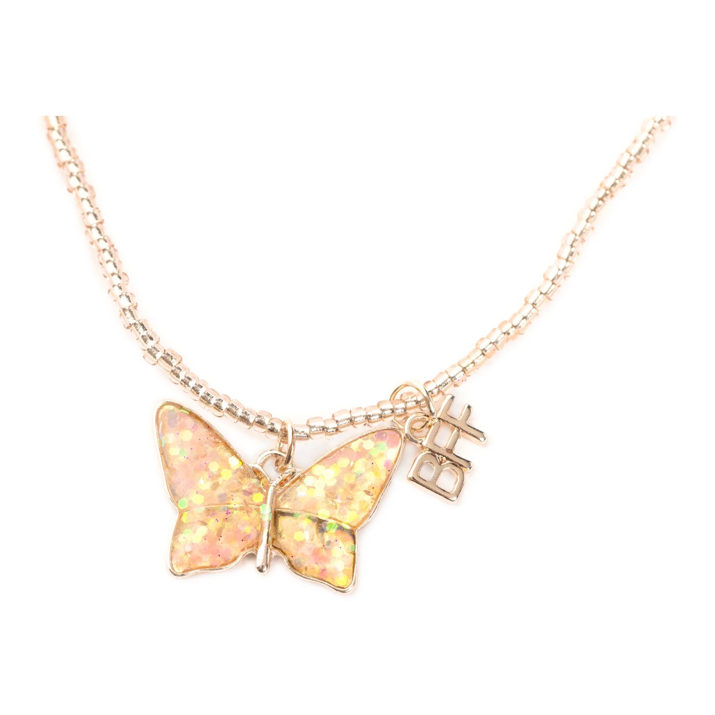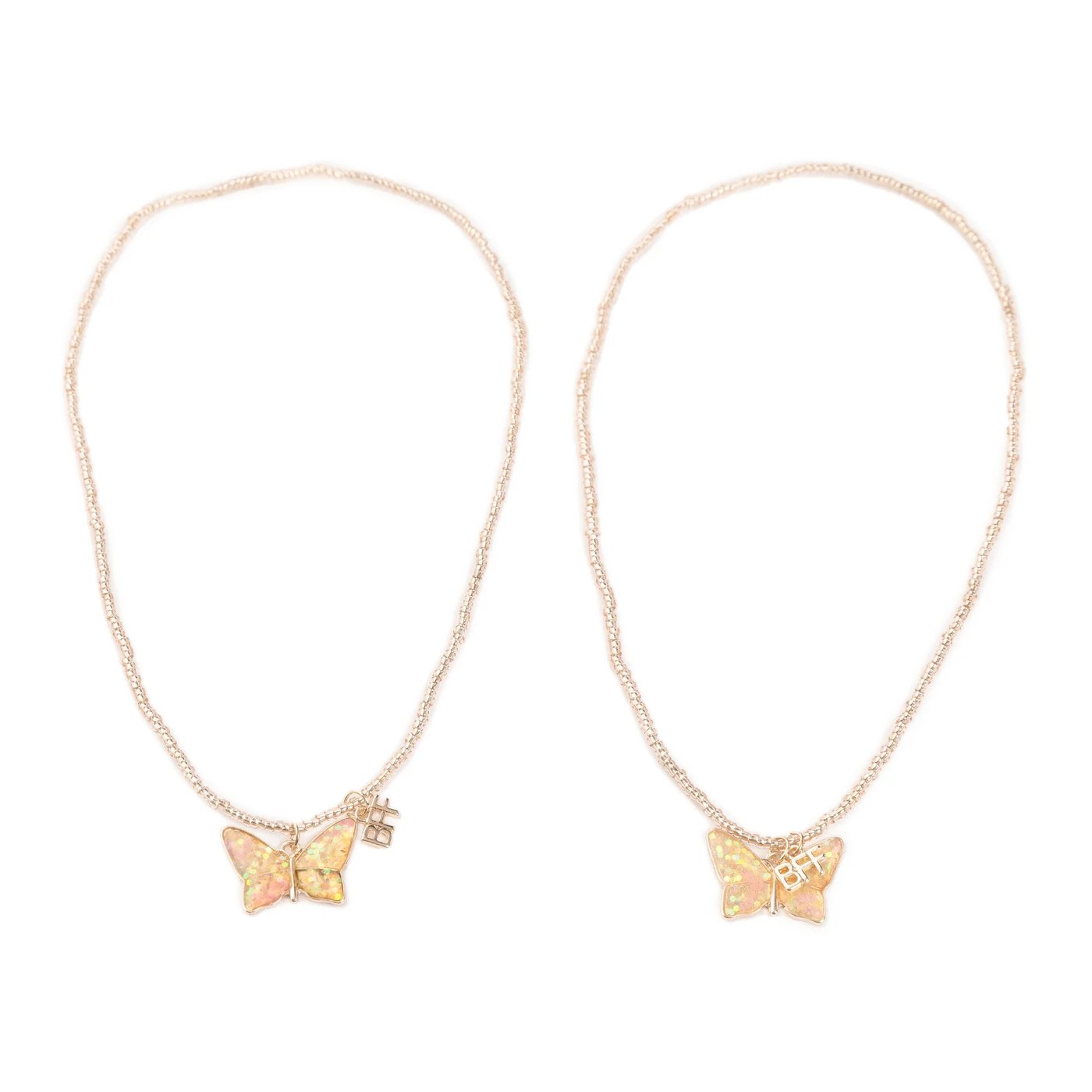 U svijetu dječjih prijateljstava, gdje svaki trenutak znači avanturu i svaki osmijeh posebnu vezu, naš Bff Pink Butterfly Share & Tear ogrlica savršeno utjelovljuje te dragocjene trenutke. Ovaj set ogrlica, izrađen s prekrasnim prozirnim iridescentnim perlama, dolazi s usklađenim privjescima leptira i BFF oznakama, stvarajući jedinstvenu simbiozu ljepote i simbolike. Idealno za najbolje prijatelje ili braću i sestre, ove ogrlice omogućuju djeci da izraze svoju međusobnu povezanost na poseban način.