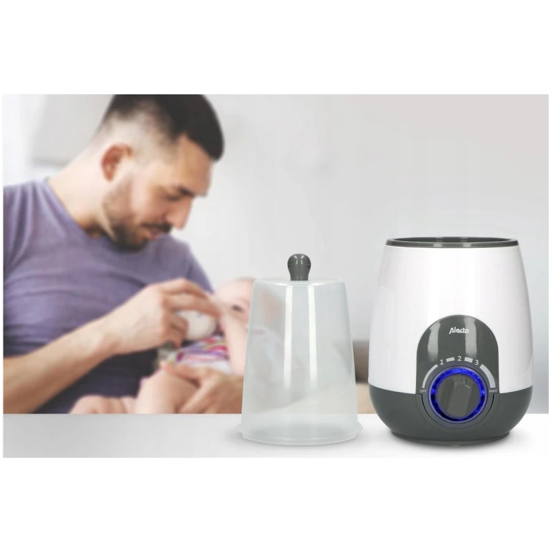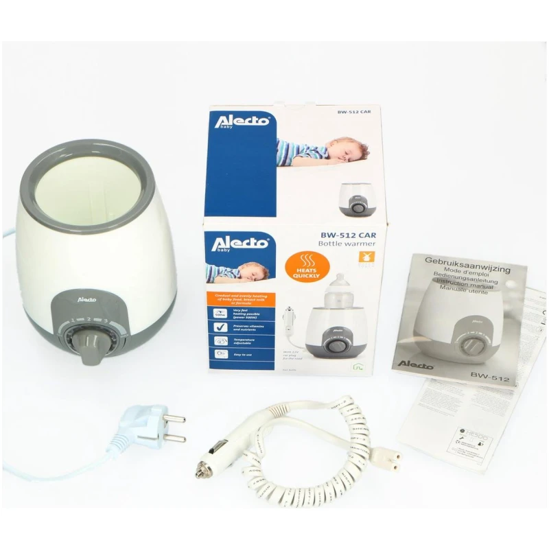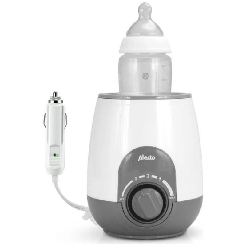 Alecto grijač bočica može se koristiti u kući i automobilu. Prikladan je za putovanja jer posjeduje oba načina napajanja. Brzo zagrijava bočice i staklenke. U pakiranju dolazi priključak 12V za automobil. Postupno i ujednačeno zagrijava dječju hranu, mlijeko ili formulu, pri tome zadržava vitamine i hranjive tvari. Veliki spremnik prikladan je za većinu posuda.