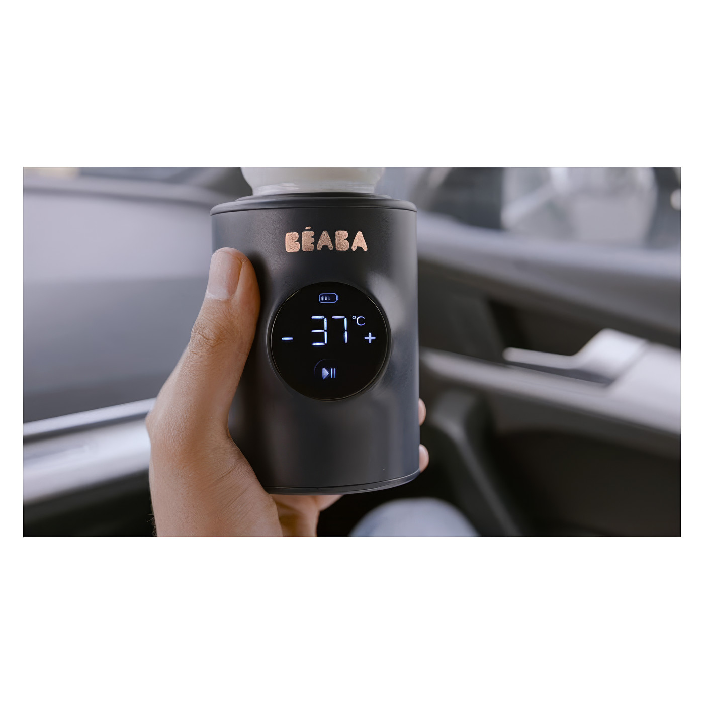 Béaba Milk Nomad je prijenosni grijač za bočice za roditelje koji žele brzo i kontrolirano grijanje mlijeka izvan kuće i kod kuće. Zagrijava sadržaj za manje od 3 minute, omogućuje podešavanje temperature od 21°C do 49°C i kompatibilan je s većinom bočica uz priložene adaptatore.