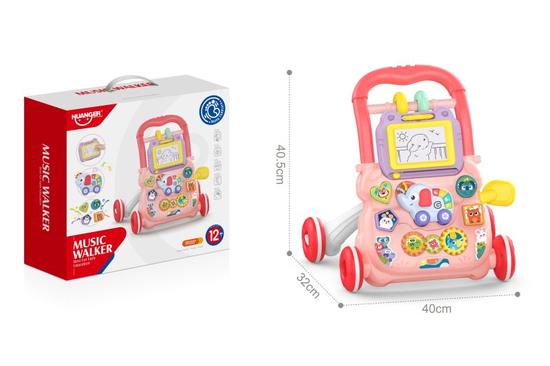 No, to nije sve! Naša guralica je višenamjenski edukativni centar. Ona ima ploču za crtanje koja se može brisati, glazbenu igračku u obliku slonića, raznobojne oblike blokova, rotirajuće zupčanike i pomične petlje. Vaše dijete će se zabavljati dok istovremeno poboljšava svoje kreativne vještine crtanja, glazbene sposobnosti, prepoznavanje oblika i boja, te razvija motoričke vještine ruku.