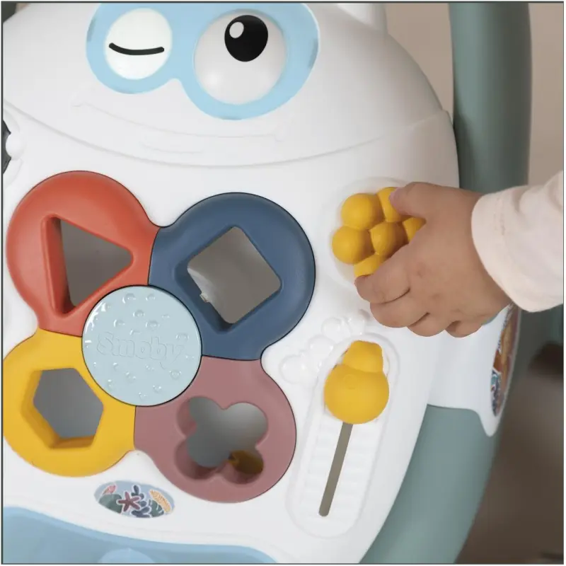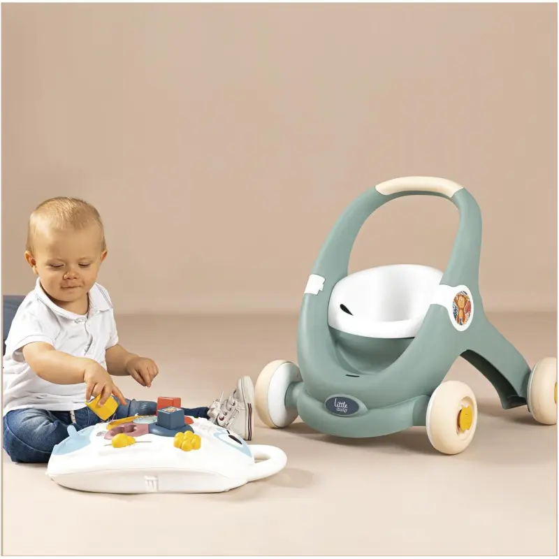 Little Smoby 3u1 guralica omogućuje djetetu da se igra i stojeći i sjedeći, pružajući mu maksimalnu slobodu i udobnost.