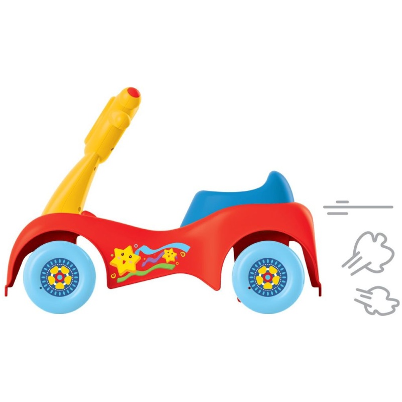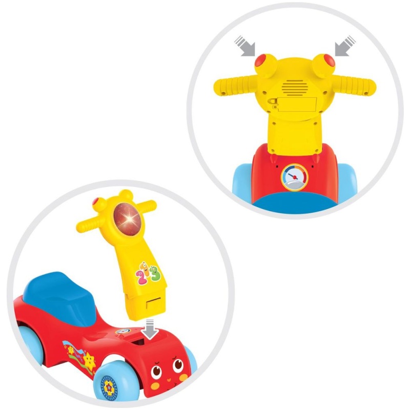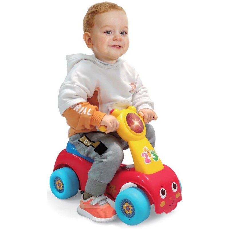 Uz ovu veselu guralicu, vaše dijete će uživati u zabavnoj i sigurnoj vožnji. Neka njihova mašta istraži nove avanture dok jačaju svoje mišiće i razvijaju koordinaciju. Neka svjetlosni i zvučni efekti ožive njihovu igru. Neka se vaše dijete osjeća kao pravi vozač s ovom šarenom guralicom.