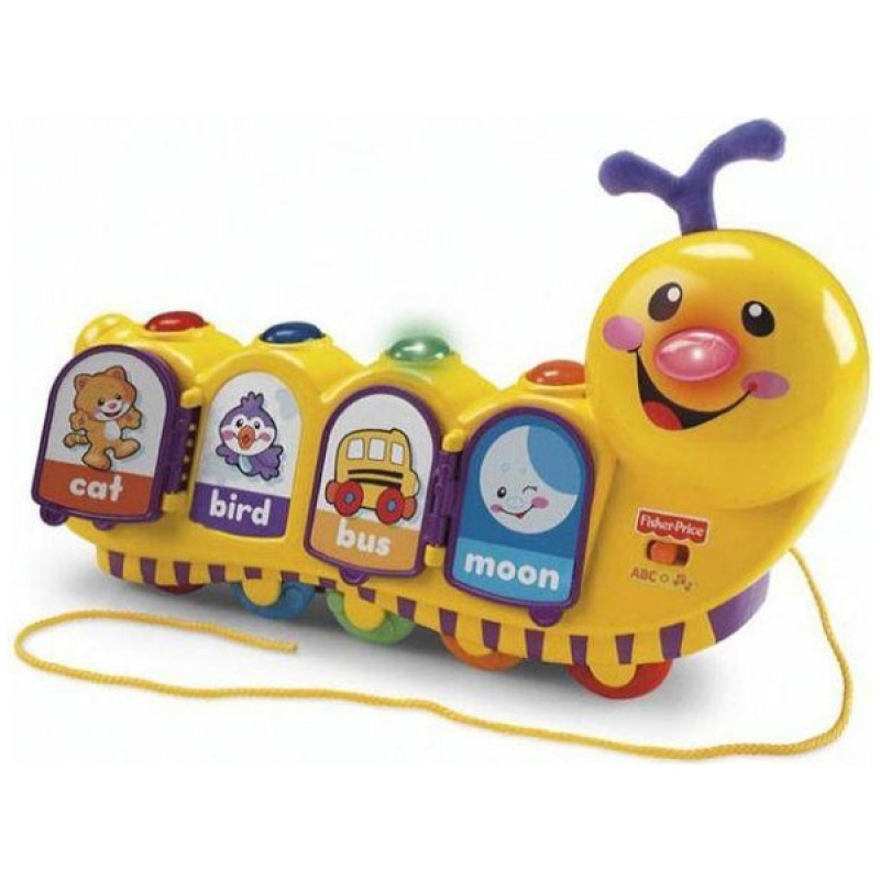 Kvalitetna i poučna igračka od proizvođača Fisher Price namjenjena je za bebe. Ova slatka gusjenica pričalica odlična je pomoć u razvoju djetetova govora. Dok dijete okreće stranice gusjenica mu govori rečenice o predmetima na stranicama. Da bi učenje bilo zabavnije postoje tipke na gusjenici koje svijetle i pritiskom na njih mogu se poslušati zabavne pjesmice. Gusjenica se može i vući za vrcu. Prikladan i lijep poklon za svako dijete. Namjenjeno za bebe od 12 mjeseci.