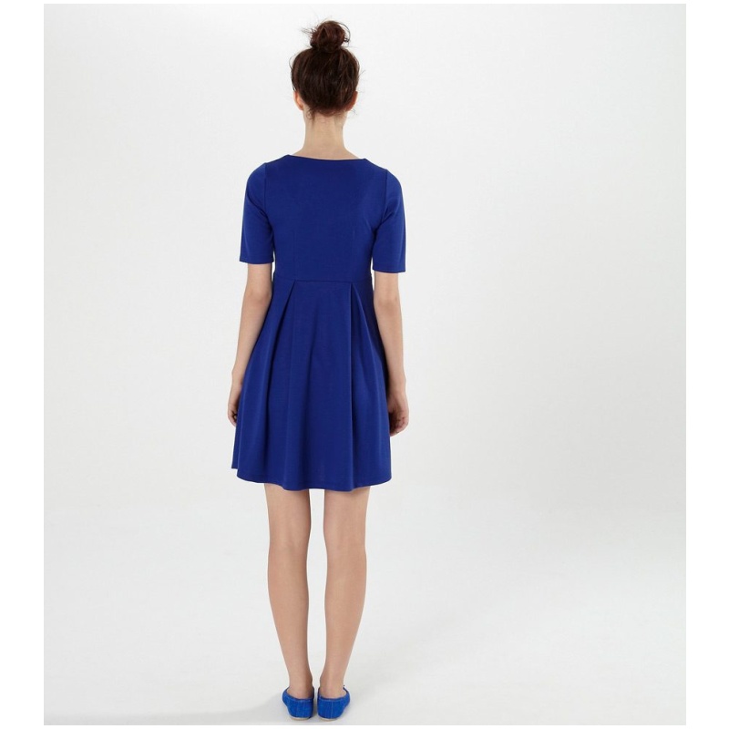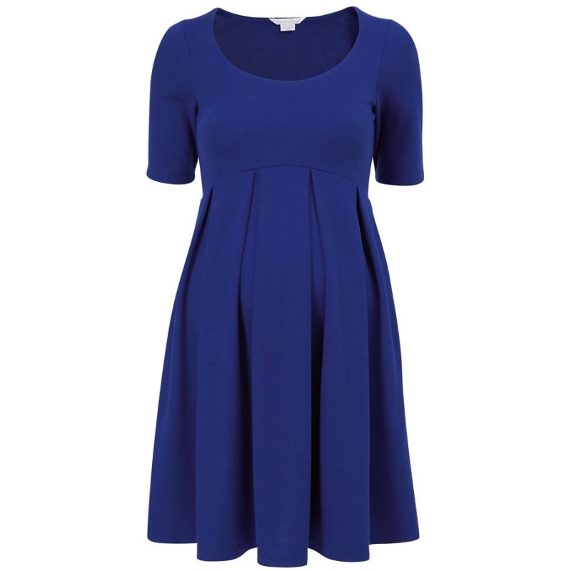 Udobna asimetrična haljina namjenjena je za trudnice. Ima ušitke na trbuhu, tako da se prilagođava rastu trbuha. Lijepog je dizajna, asimetričnog kroja i jednostavne plave boje. Polu-dugih je rukava. Prikladna je za svaku trudnicu. Periva je u perilici. Sastav: 93% pamuk, 7% elastin.