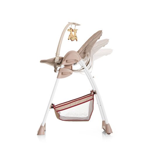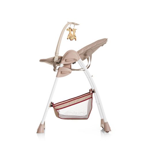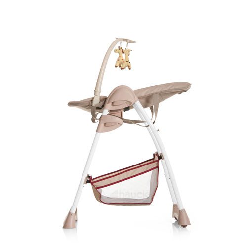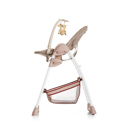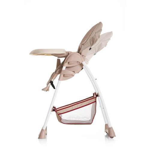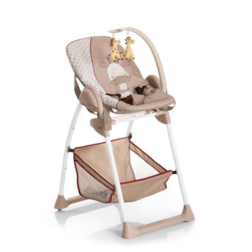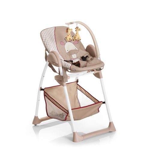 Ova praktična hranilica koristi se od rođenja pa sve do djetetovih 15 kg. Ova stolica je kombinacija ležaljke i hranilice. Nastavci su podesivi u 7 visina. Udobna ležaljka se koristi od rođenja i podesiva je tako da je beba uvijek u visini s Vama za stolom ma gdje sjedili. Da bi položaj Vaše bebe bio primjeren njenom uzrastu naslonjač je podesiv u više položaja. Igračkica koja dolazi uz ovu hranilicu potiče bebinu motoriku, a može se pomjeriti u stranu ili potpuno skinuti. Kada beba može samostalno sjediti potrebno je koristiti drugi nastavak hranilice. Široko ergonomsko sjedalo je posebno udobno. Naslon hranilice je podesiv kao i naslon za noge koji se pomjera kako dijete raste. Sigurnosni pojas se kopča u 5 točaka, a za dodatnu sigurnost tu se nalazi i zaštita postavljena između bebinih nogica kako bi dijete bilo što sigurnije prilikom objeda. Za optimalnu udobnost pladanj je podesiv po visini. Na pladnju se nalaze uzvišeni rubovi kao i udubljenje za čašu, tako da i ako se nešto prospe pladanj se lako skida i čisti. Kada je dijete veće i pladanj više nije potreban možete ga skinuti i zakačiti otraga na konstrukciju hranilice. Za odlaganje igračaka ili proizvoda za bebe na hranilici se nalazi košarica. Dva ugrađena kotača služe za lakše pomicanje hranilice u prostoriji. Ukoliko hranilica nije više potrebna može se sklopiti te zauzima malo mjesta. Zbog svoja dva nastavka ova praktična hranilica se može dugo koristiti.