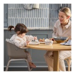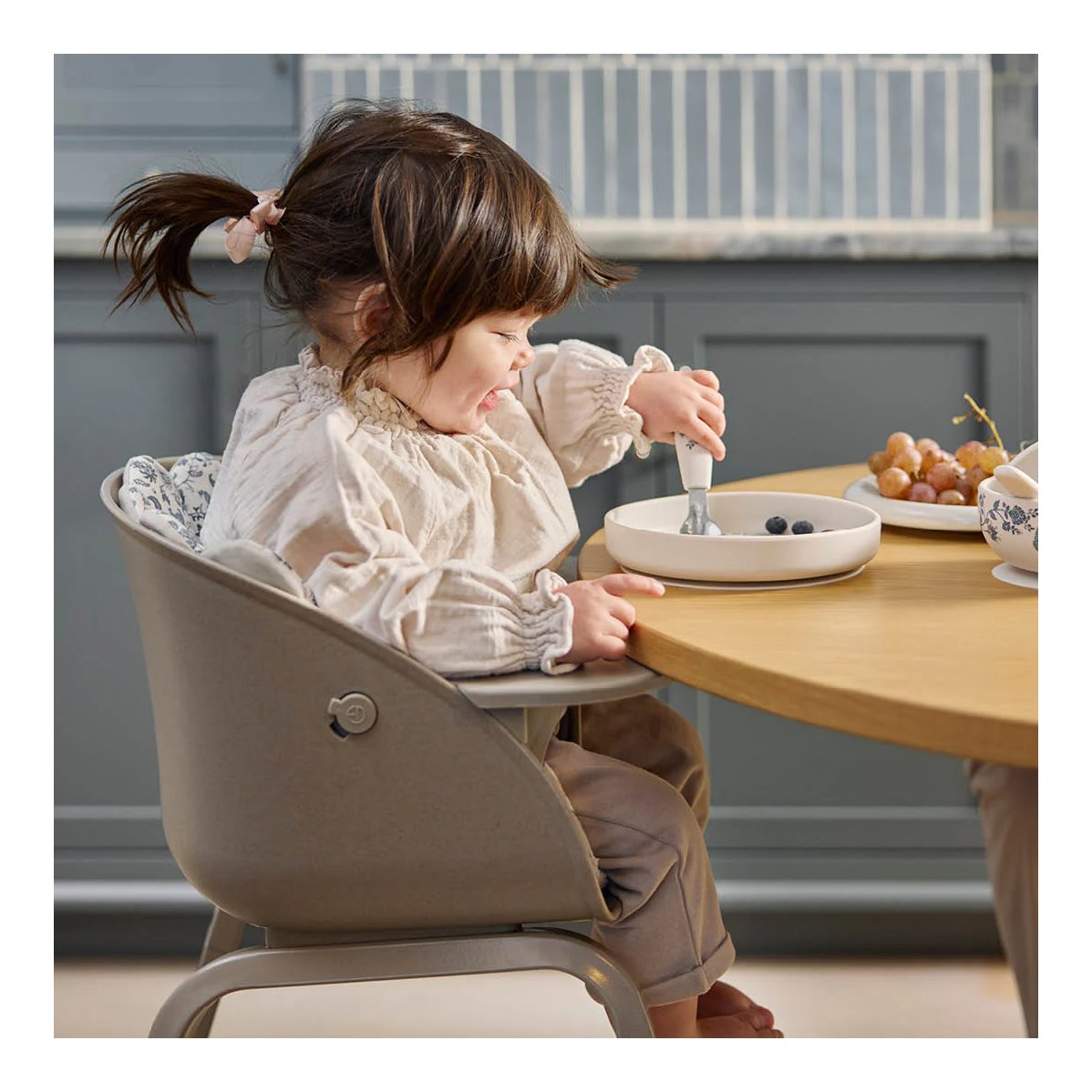 Elodie Grace stolica za hranjenje odiše elegancijom i svestranošću, prilagođavajući se potrebama vašeg djeteta dok raste. Njezina jedinstvena prednost leži u prilagodljivom osloncu za noge i mogućnosti postavljanja uz blagovaonski stol ili korištenja s poslužavnikom koji se lako čisti u perilici posuđa. Ova stolica zauzima minimalno prostora, što je čini savršenom za moderne, urbane domove. Dostupni dodaci poput sjedala za novorođenče i jastuka u prepoznatljivim Elodie bojama omogućuju personalizaciju svakog detalja.