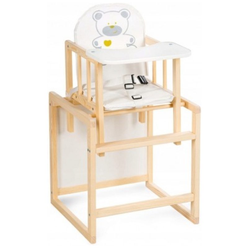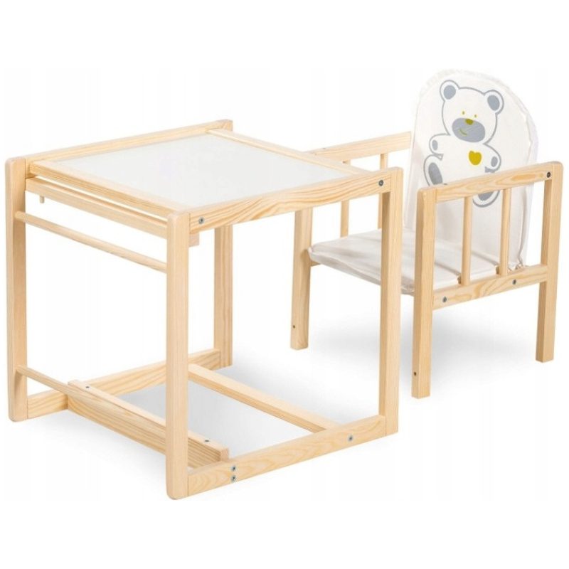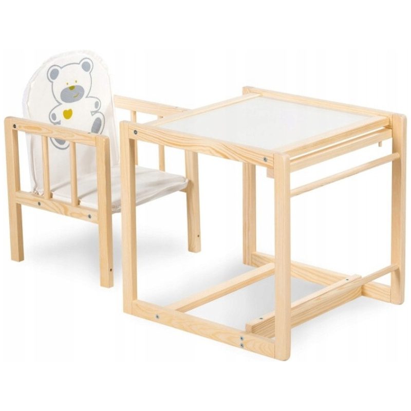 Ova praktična i kvalitetna drvena hranilica koja poslije može biti stol i stolica prikladna je za djecu od 0 do 5 godina. Kao visoka hranilica koristi se do 2. godine života, a poslije se jednostavno pretvara u stol i stolicu i može se koristiti sve do djetetove 5. godine. Lagana je za održavanje. Pladanj se po potrebi skida.