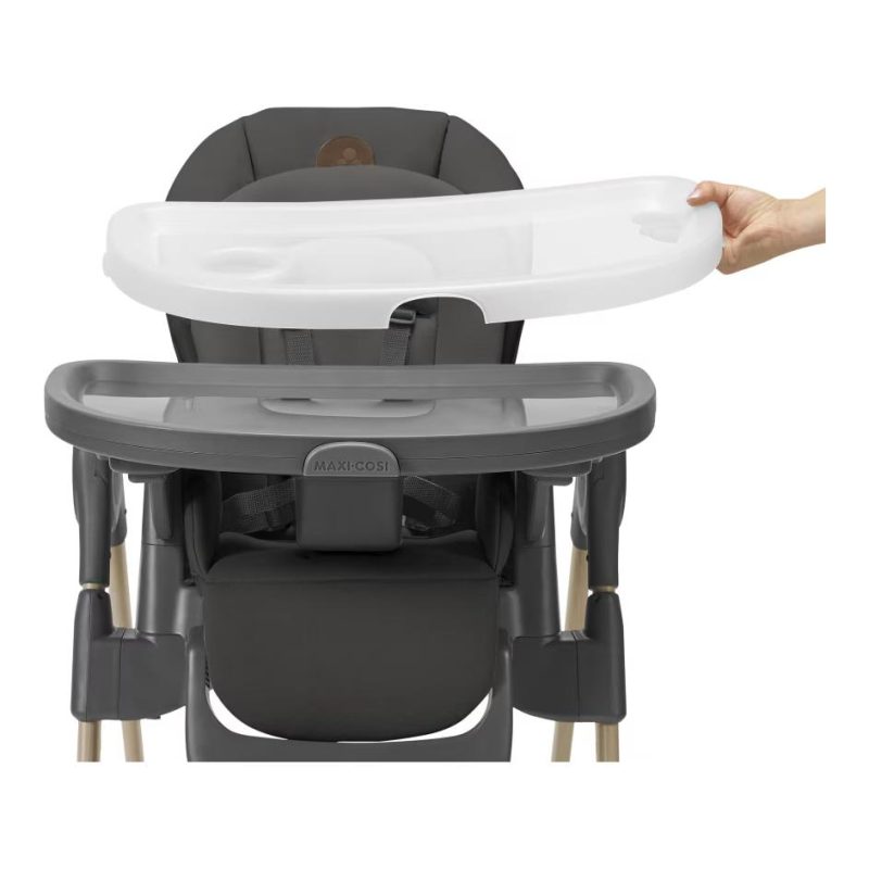 Hranilica ima 5 položaja nagiba i 4 podešavanja uzglavlja, što vam omogućuje da prilagodite sjedalo prema potrebama vašeg djeteta. Pladanj ima 4 položaja i može se jednostavno ukloniti jednom rukom kako biste lakše hranili dijete. Možete ga čak postaviti na stražnju stranu okvira stolice kako biste ga sačuvali kada nije u upotrebi.