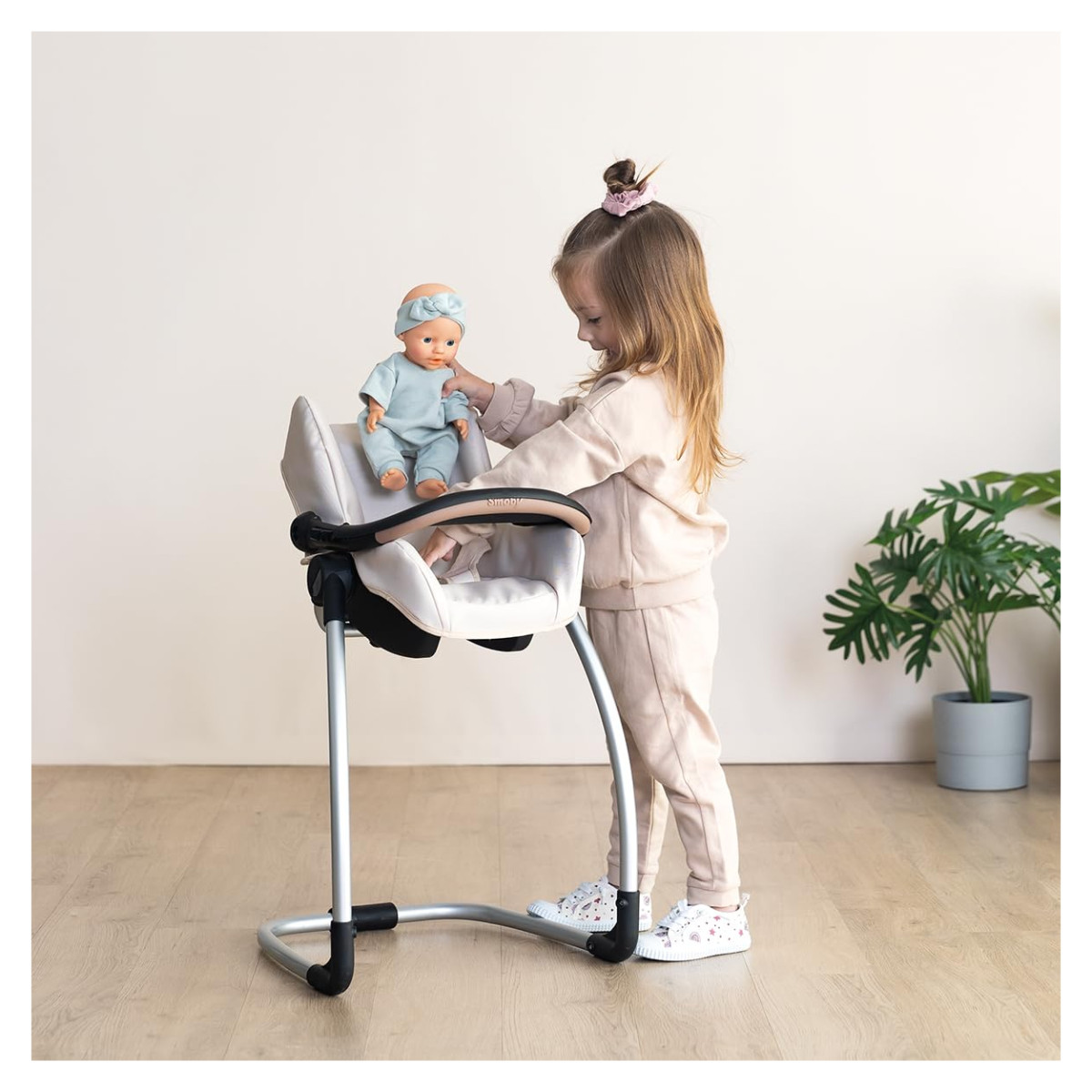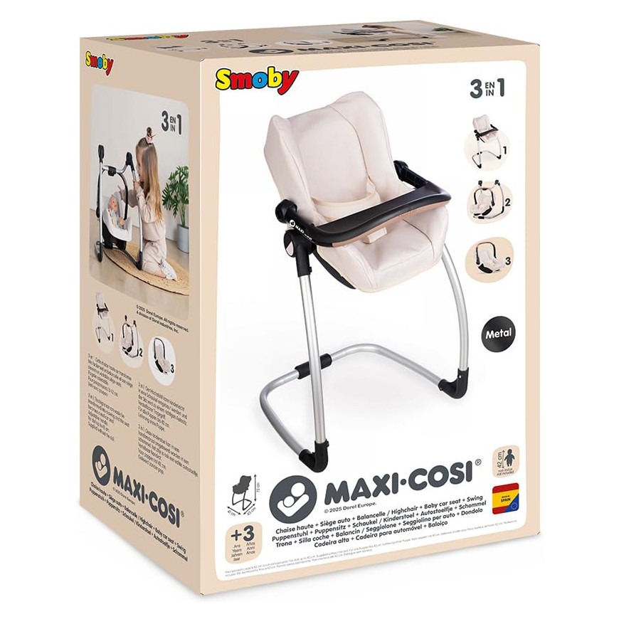 Ova svestrana igračka donosi tri zabavna načina igre u jednom: hranilicu s praktičnim stolićem, nježnu ljuljačku i prijenosnu autosjedalicu za lutke do 42 cm. Idealan je odabir za djecu koja vole brinuti o svojim lutkama i istraživati svakodnevne situacije kroz igru. Zahvaljujući pametnom dizajnu, lako se prilagođava svakoj igri i prostoru.