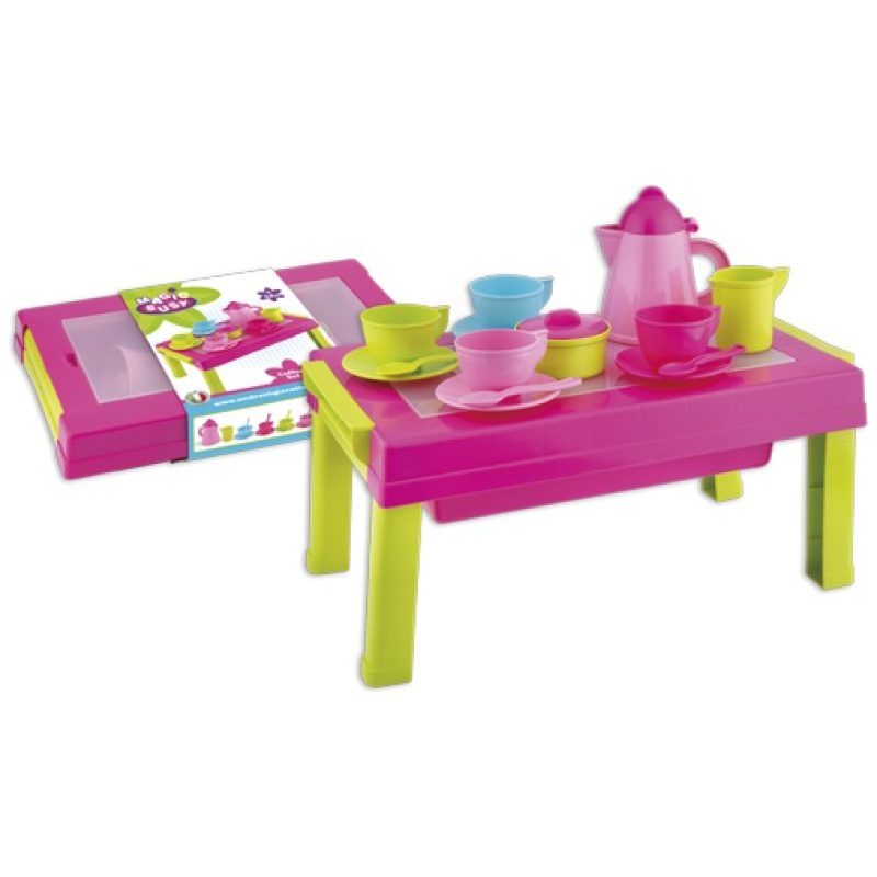 Stol za igru sa setom za čaj. Poslužite lijepu šalicu čaja na stol. Preklopite stol kad završite i spremite posuđe u stol.