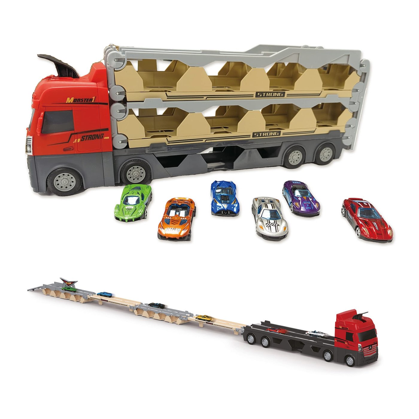 Auto Transporter 22027614 je pravi izbor ako tražite igračku koja će donijeti sate beskrajne zabave vašem djetetu, a istovremeno poticati njihovu kreativnost i maštu. Ovaj inovativni set 3-u-1 kombinira veliki trostruki kamion, sklopivu trkaću stazu i akcijski katapult, čineći ga idealnim suputnikom za svako dijete starije od 3 godine. To je više od igračke – to je kompletno iskustvo koje donosi osmijehe i oduševljenje.