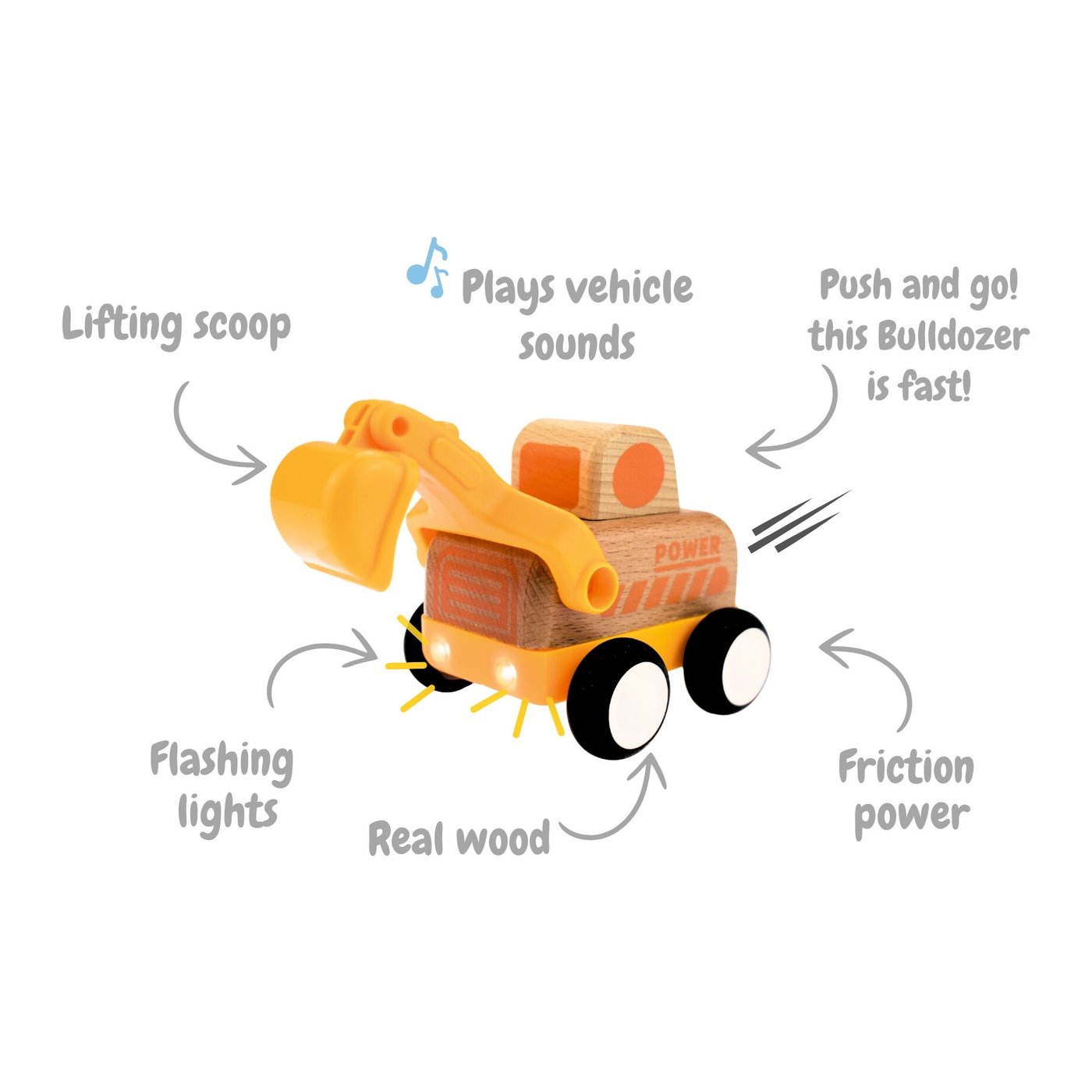 Pažnja svih roditelja i mališana! Pripremite se za uzbudljivu avanturu uz Drvenu igračku bager – igračku koja donosi sate zabave i učenja u domove. Ovaj čvrsti mali bager, izrađen od mješavine prirodnog drveta i kvalitetne ABS plastike, spreman je za akciju. Njegov vibrantni narančasti dizajn odmah privlači pažnju, dok ga pogon na trenje omogućuje da juri podom uz zvučni “vroom”, koji oživljava igru.