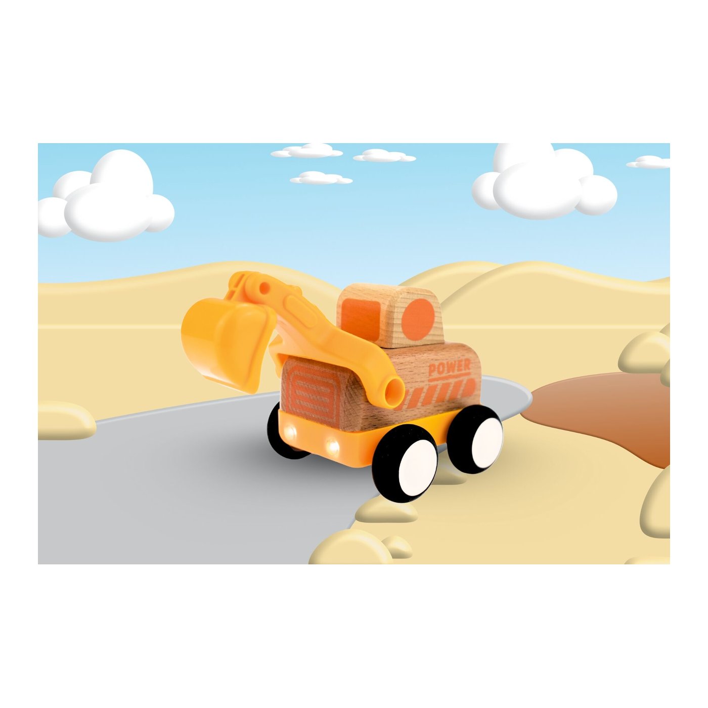 Ali to nije sve – pritisnite bager dolje i uživajte u tri uzbudljiva zvuka: huk motora pri pokretanju, veseli zvuk trube i upozoravajući beep beep pri kretanju unatrag. Prednja svjetla se također pale za dodatnu zabavu. Ova funkcija nije samo zabavna, već također pomaže djeci da razviju fine motoričke vještine i koordinaciju ruka-oko.
