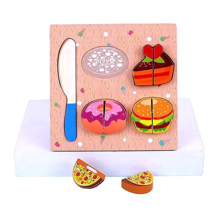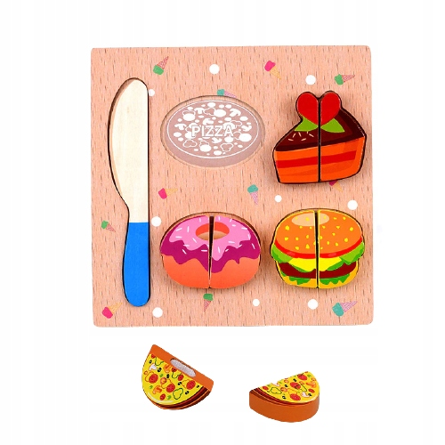 Naša igračka dolazi s drvenom daskom i nožem dizajniranim za male ruke, zajedno s nizom primamljivih namirnica poput pizze, krofne i hamburgera. Svaka namirnica je spojena magnetskim spojevima, omogućujući jednostavno “rezanje” i ponovno sastavljanje. Ove realistične imitacije hrane potiču igru uloga, što je ključno za kognitivni razvoj i socijalne vještine vašeg djeteta.