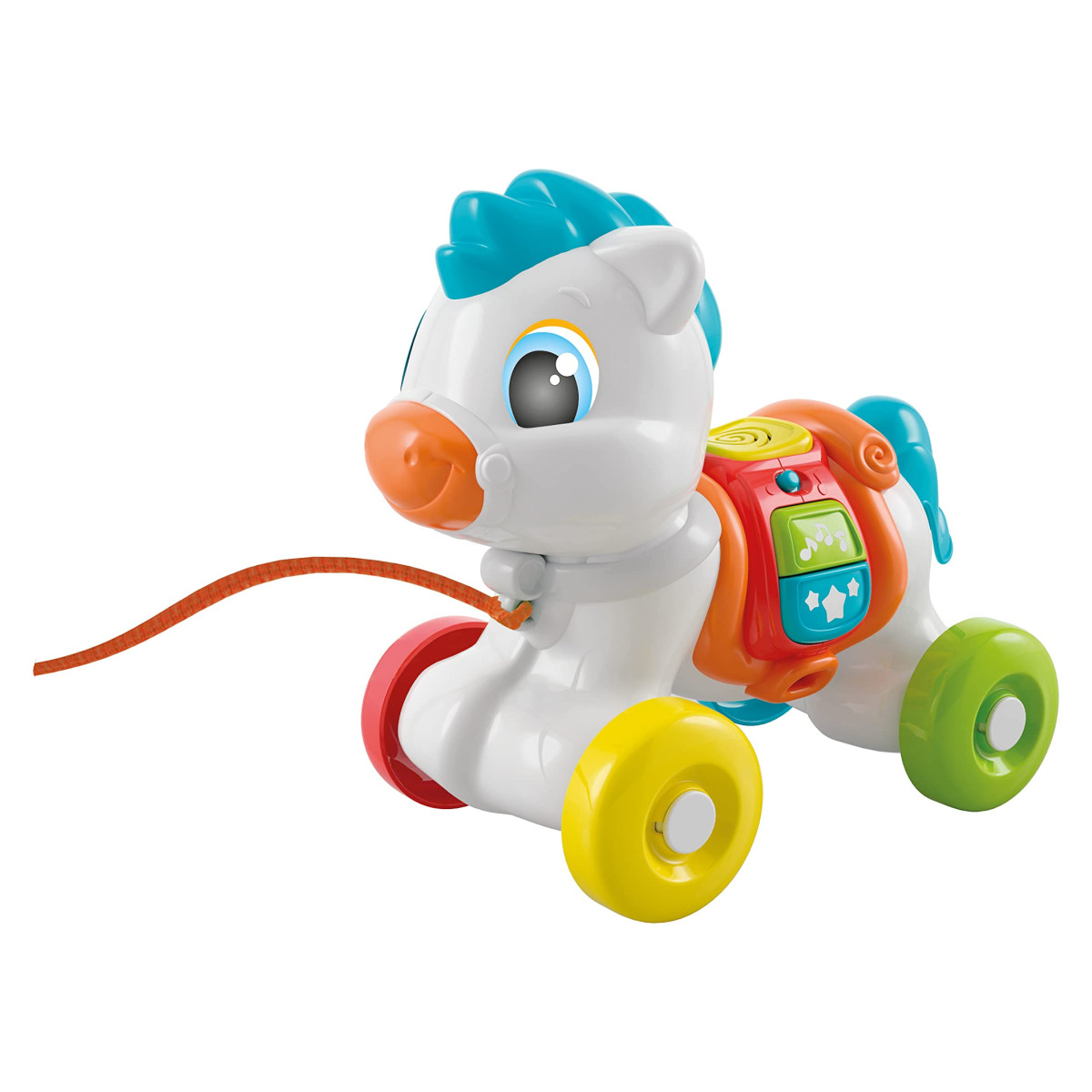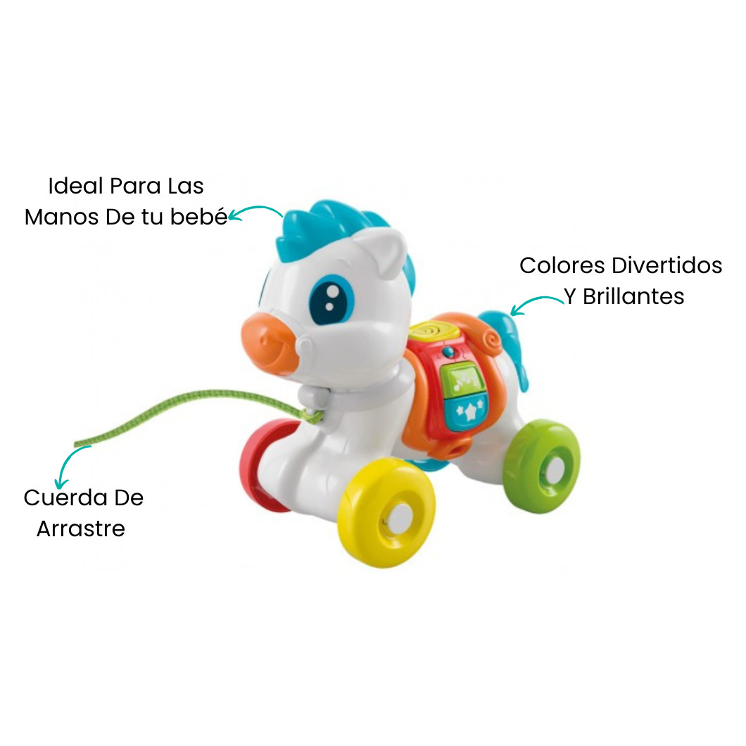Ova šarmantna igračka na povlačenje postat će omiljeni pratitelj vašem mališanu već od 6 mjeseci. Mekani materijal pruža potpunu sigurnost pri igri, a preslatki poni lik odmah poziva na maštovite avanture. Povlačenjem konjića, beba razvija znatiželju, uči uzročno-posljedične odnose i potiče prve pokušaje puzanja i hodanja.