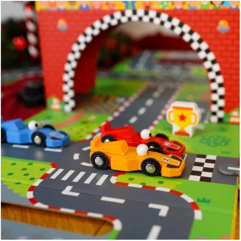 Zamisli svoje dijete kako uživa u postavljanju trkaće staze, dodavanju figura i automobila, mijenjanju guma i natjecanju s prijateljima. Vidi osmijeh na njihovom licu i čuj smijeh dok se natječu i slave pobjede.