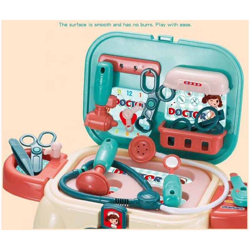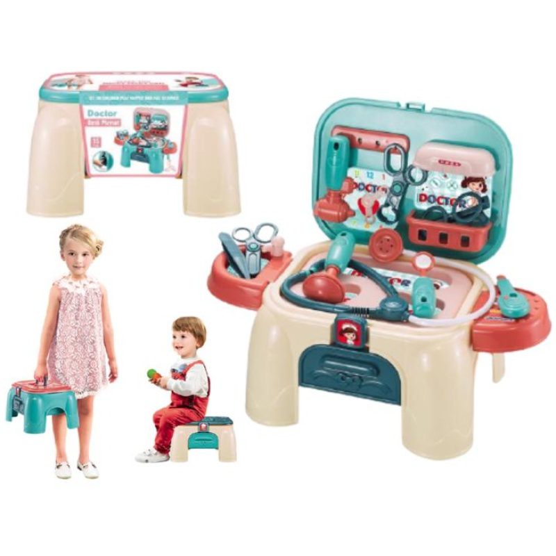 Zanimljivi set za igru doktora. Kada je sklopljen, može poslužiti kao stolac, a kada dođe vrijeme za igru, brzo se transformira u atraktivan set za doktora. Izrađeno od kvalitetne i čvrste plastike. Prikladan dar za svako dijete.