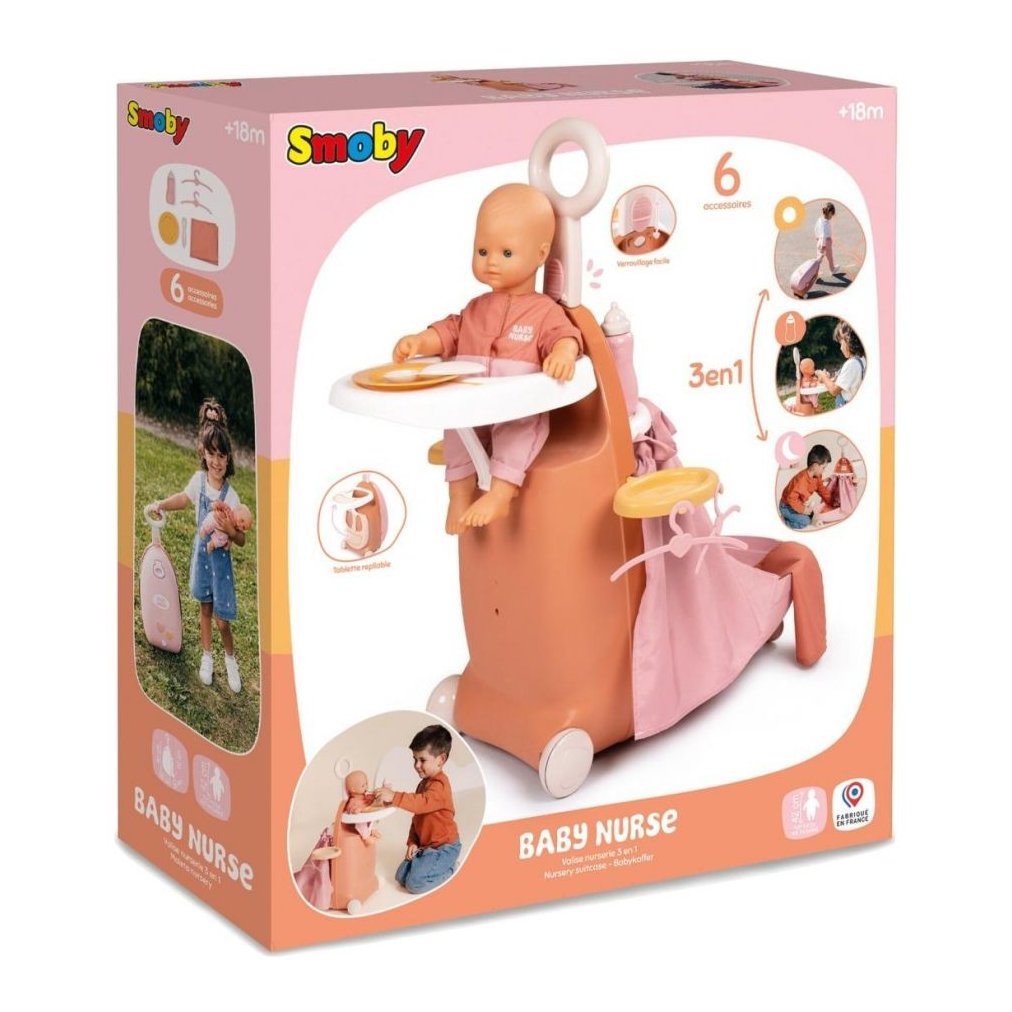 Smoby Baby Nurse Kofer-Kolica za lutke pruža inovaciju i udobnost s 3-u-1 dizajnom. Izrađen od visokokvalitetne plastike, osigurava sigurnost i trajnost.