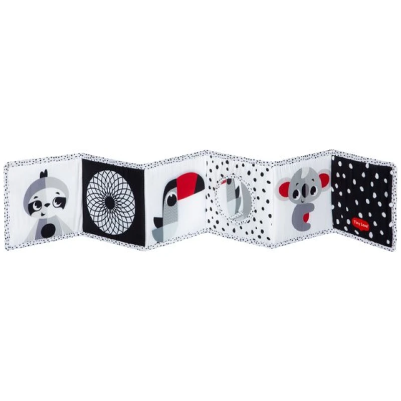 Tiny Love dvostrana prva knjiga je knjiga ilustracija s dvostrukom fazom koja ima dvije strane različitih shema boja i različitih aktivnosti koje podržavaju razvoj beba u dvije različite faze. Jedna strana sadrži jednostavnu crno-bijelu shemu boja za poticanje vida od rođenja, na stražnjoj strani su svijetle boje s povišenim znakovima s mrljasto teksturnim područjima za starije bebe. Bebe obožavaju igranje peek-a-boo-a i uživat će u drhtavim aktivnostima u knjizi. Lako sklopivo, vaše dijete može svugdje ponijeti svoju omiljenu prvu knjigu. Roditelji mogu knjigu smjestiti u dječji krevetić, vrtić za igranje ili kolica. Prikladan dar za svako dijete. Za bebu od rođenja.