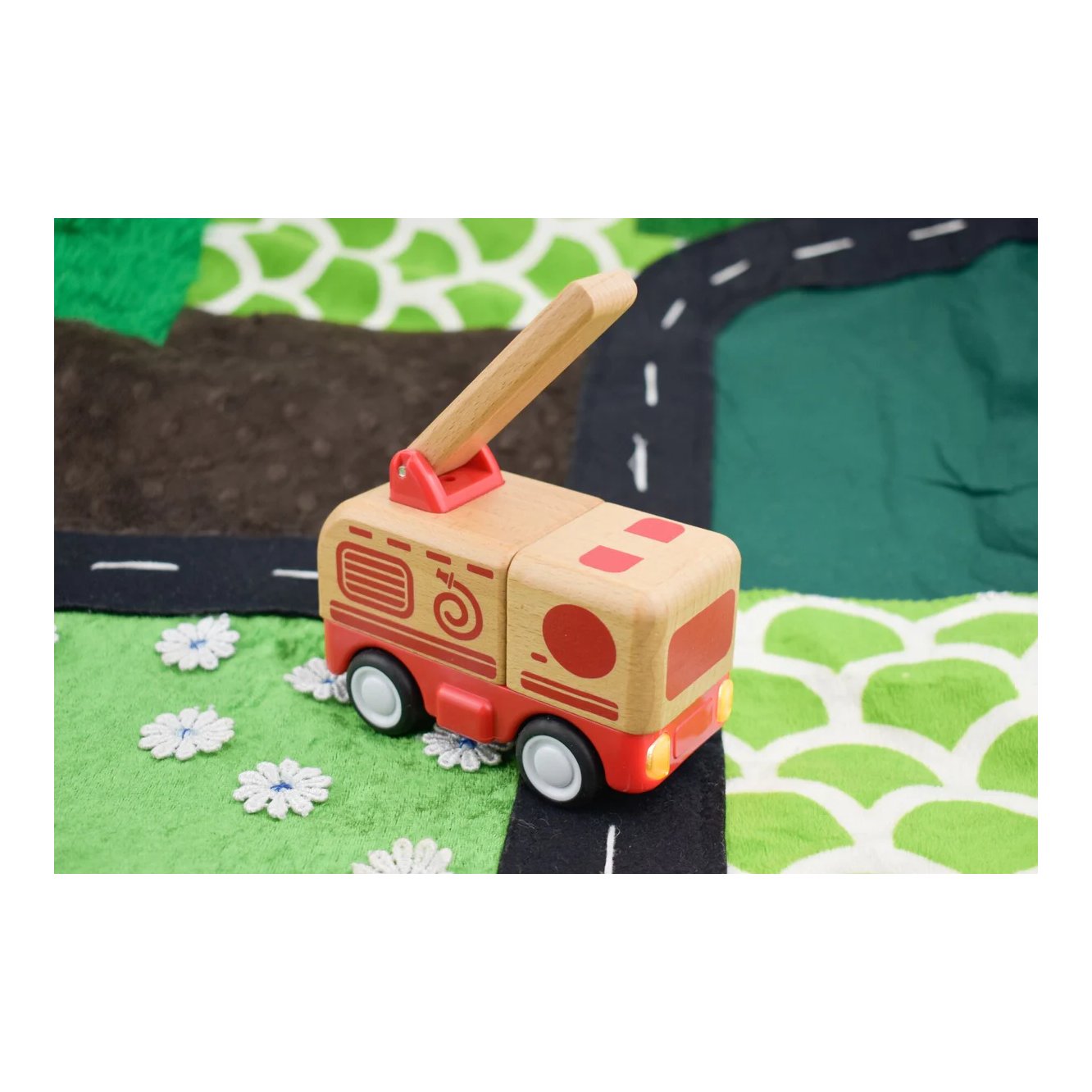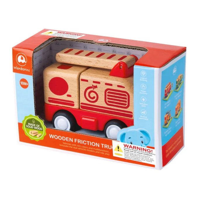 Izrađeno od ekološki prihvatljivog drva s živopisnim crvenim detaljima, ovo vatrogasno auto nije samo vizualno privlačno, već je i ekološki osviješteno, savršeno za savjesne roditelje. Njegove plastične komponente dodaju dodatnu izdržljivost, osiguravajući trajnu zabavu. Ono što ga čini jedinstvenim jest njegova sposobnost da se pokrene jednostavno upotrebom trenja – samo ga povucite unatrag, pustite, i gledajte kako juri naprijed s uzbudljivim zvukom motora.