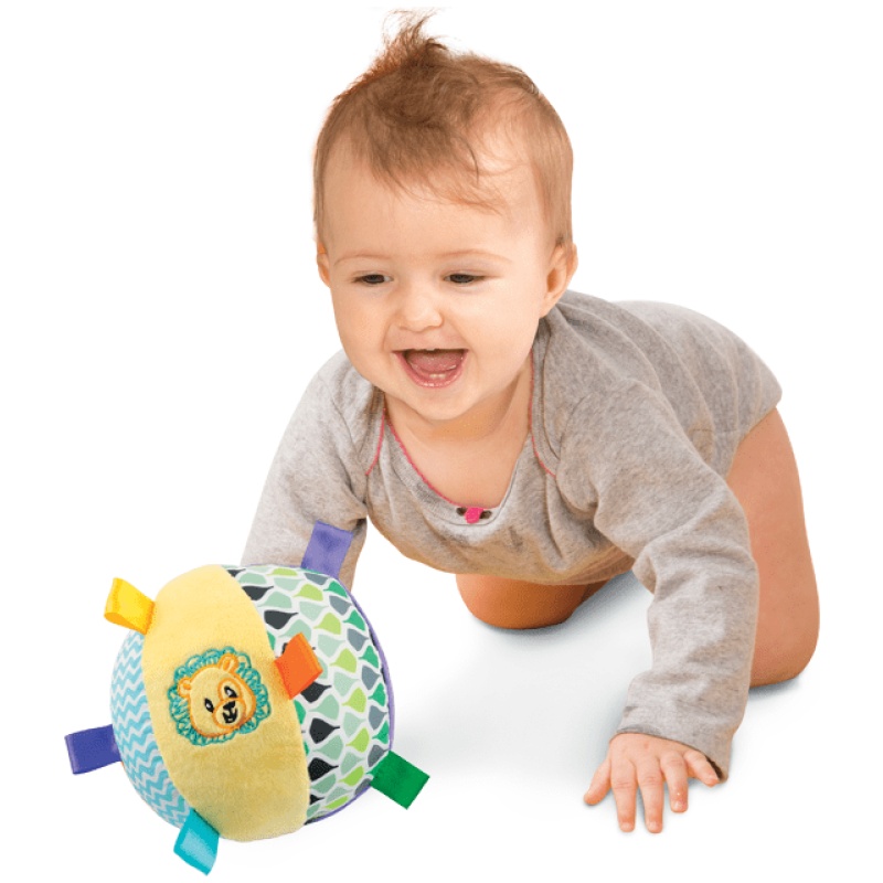 Vesela šarena zvečka proizvođača WinFun u obliku loptice. Zabavna za svako dijete. Namijenjeno za bebu od 3+ mjeseci.