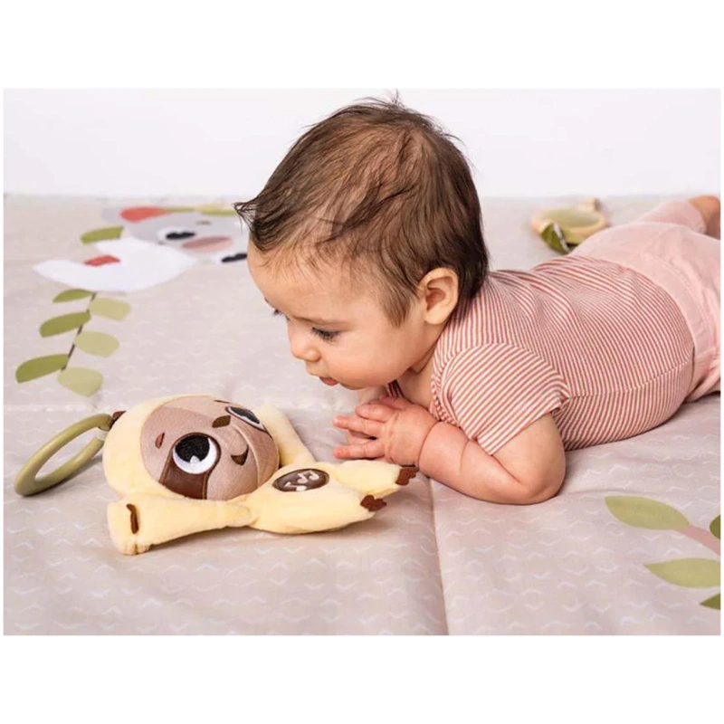 Preslatka glazbena igračka koju aktivira beba. Super suputnik kamo god pošli! Sadrži melodije koje aktiviraju bebe koje oduševljavaju bebu kod kuće i u pokretu, dok istovremeno promiču učenje i spoznaju uzroka i posljedica. Izrađeno od različitih tekstura i naboranih tkanina koje potiču otkrivanje i razvoj dok nude taktilnu stimulaciju i podržavaju finu motoriku. Kopča za jednostavno pričvršćivanje omogućuje vam da nosite ovog utješnog suputnika kamo god idete, umirujući bebu poznatom igračkom. Predstavlja Marka, simpatičnog ljenivca nazvanog po Marku Twainu.
