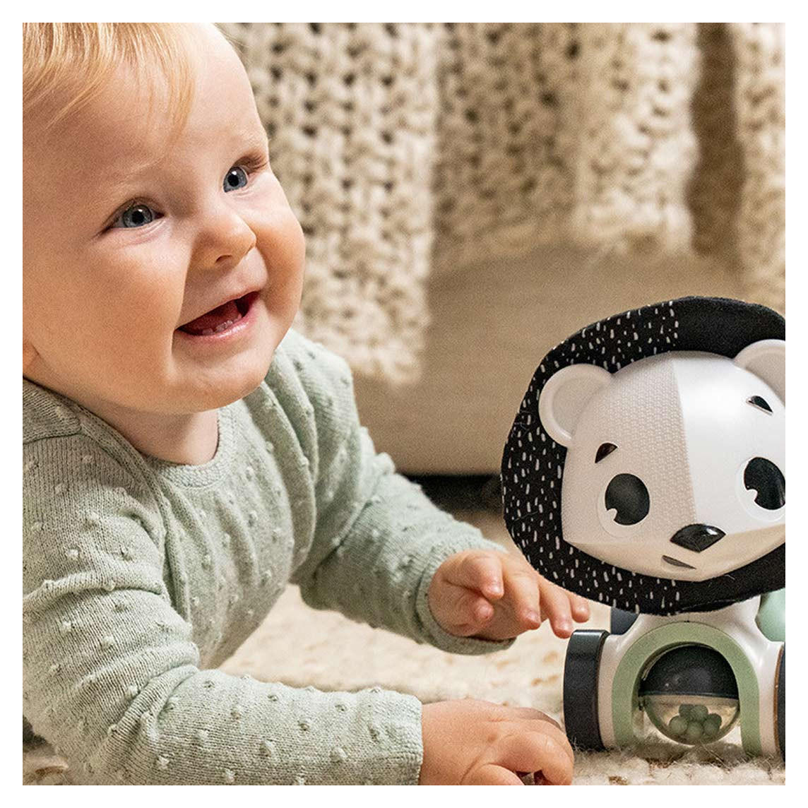 Tiny Love Tiny Rolling Toy Black&White namijenjena je bebama koje tek počinju aktivnije pratiti, dodirivati i istraživati predmete oko sebe. Dobar je izbor kada želite prvu razvojnu igračku koja potiče vid, pažnju i pokret bez previše složenih elemenata.