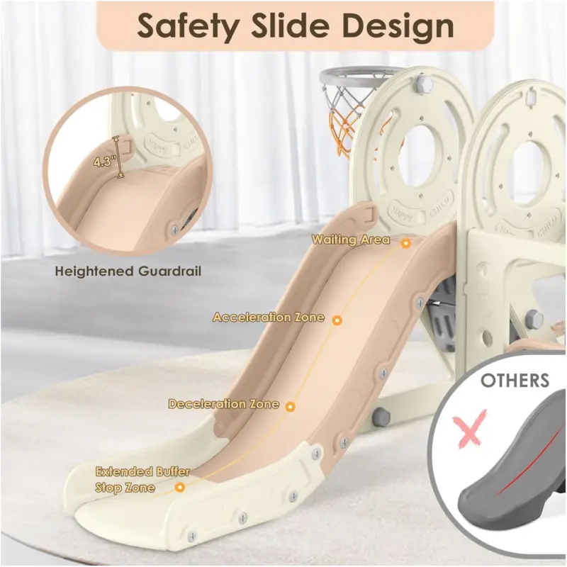 Igraonica je izrađena od HDPE materijala koji je bez mirisa i certificiran prema ASTM i CPSIA standardima. Njena čvrsta struktura i glatka površina osiguravaju dugotrajnost i ugodno iskustvo klizanja. Može izdržati težinu do 50kg, što je dovoljno za većinu djece tog uzrasta.