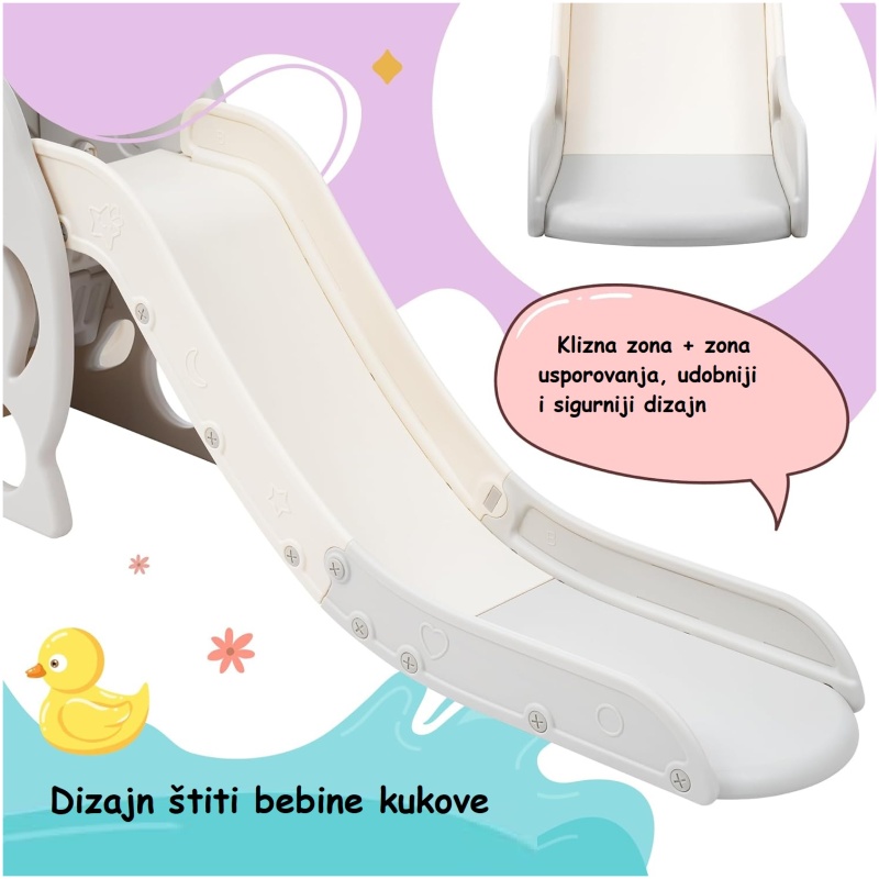 ASTM CERTIFICIRAN + HDPE MATERIJAL – Tobogan za malu djecu izrađen je od HDPE materijala koji je bez mirisa i certificiran od strane ASTM i CPSIA. Čvrsta struktura i glatka površina osiguravaju izdržljivost i pružaju ugodno iskustvo klizanja. Može izdržati do 60kg, što odgovara težini većine male djece.