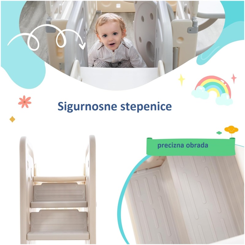 Kupnja bez brige – vrijednosni paket: tobogan, košarkaška lopta, košarkaški obruč, korisnički priručnik, 2 pakiranja neklizajućih čarapa, ljuljačka, mekani jastuk i 4 vakuumske podloge. Dimenzije: 215cm x 170cm x 100cm. Možete ga sastaviti bez dodatnih alata, prikladan za unutarnju i vanjsku upotrebu, provjerite jesu li svi priključci sigurni.