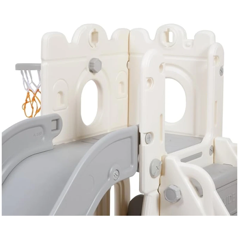 UNUTARNJI TOBOGAN DVORAC U OBLIKU L – na dnu dječjeg tobogana nalazi se prostor za pohranu u koji se mogu pohraniti dječje igračke. Najbolje od svega je jedinstveni dizajn dvorca u obliku slova L, koji vašem mališanu pruža sate zabave, promičući aktivnu igru i tjelovježbu.