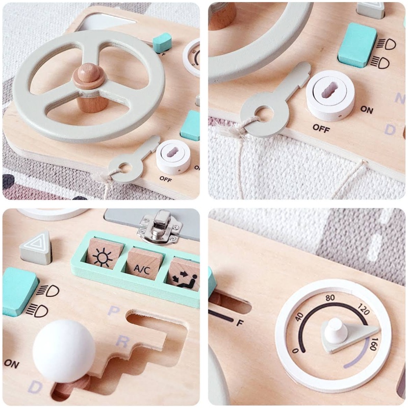 Izrađena od izdržljivog drvenog materijala, ova ploča volana sigurna je i bezopasna za igru. Svi dijelovi pažljivo su obrađeni i nemaju oštre ivice kako bi pružili potpunu sigurnost i zaštitu djeteta.